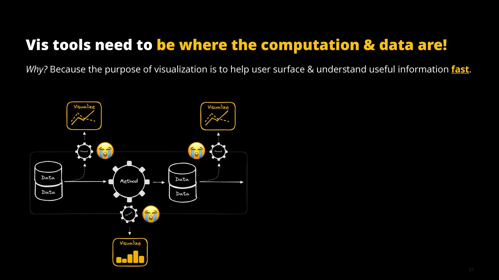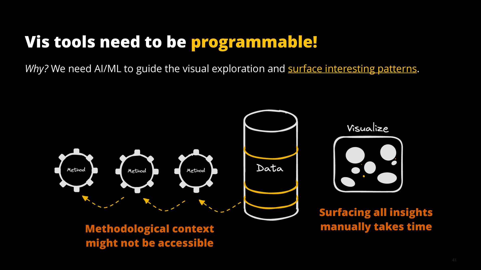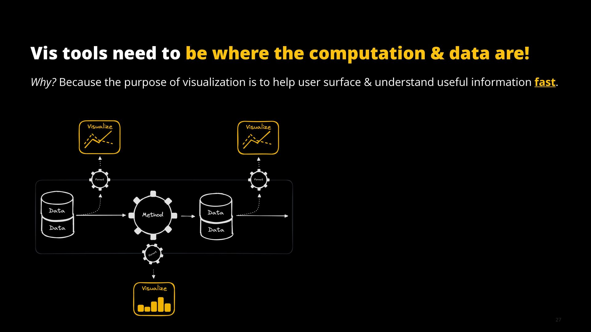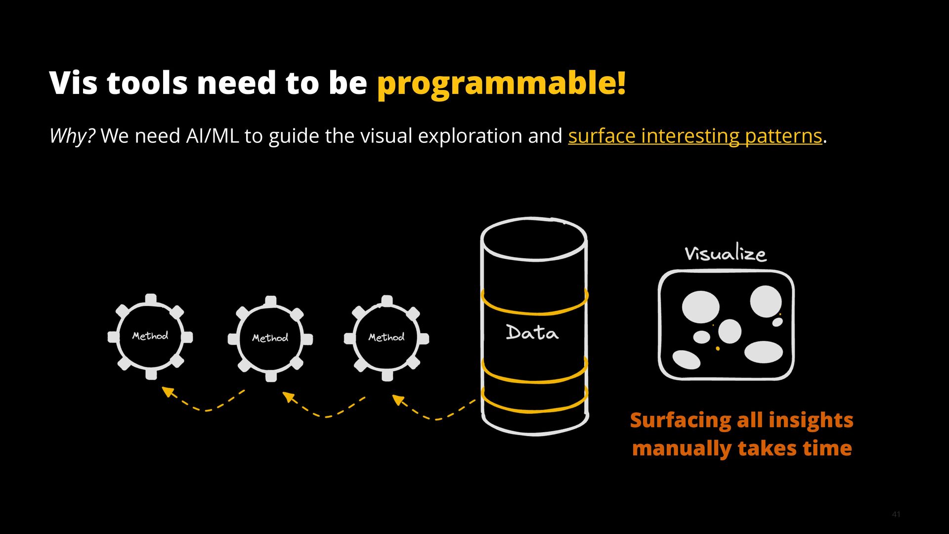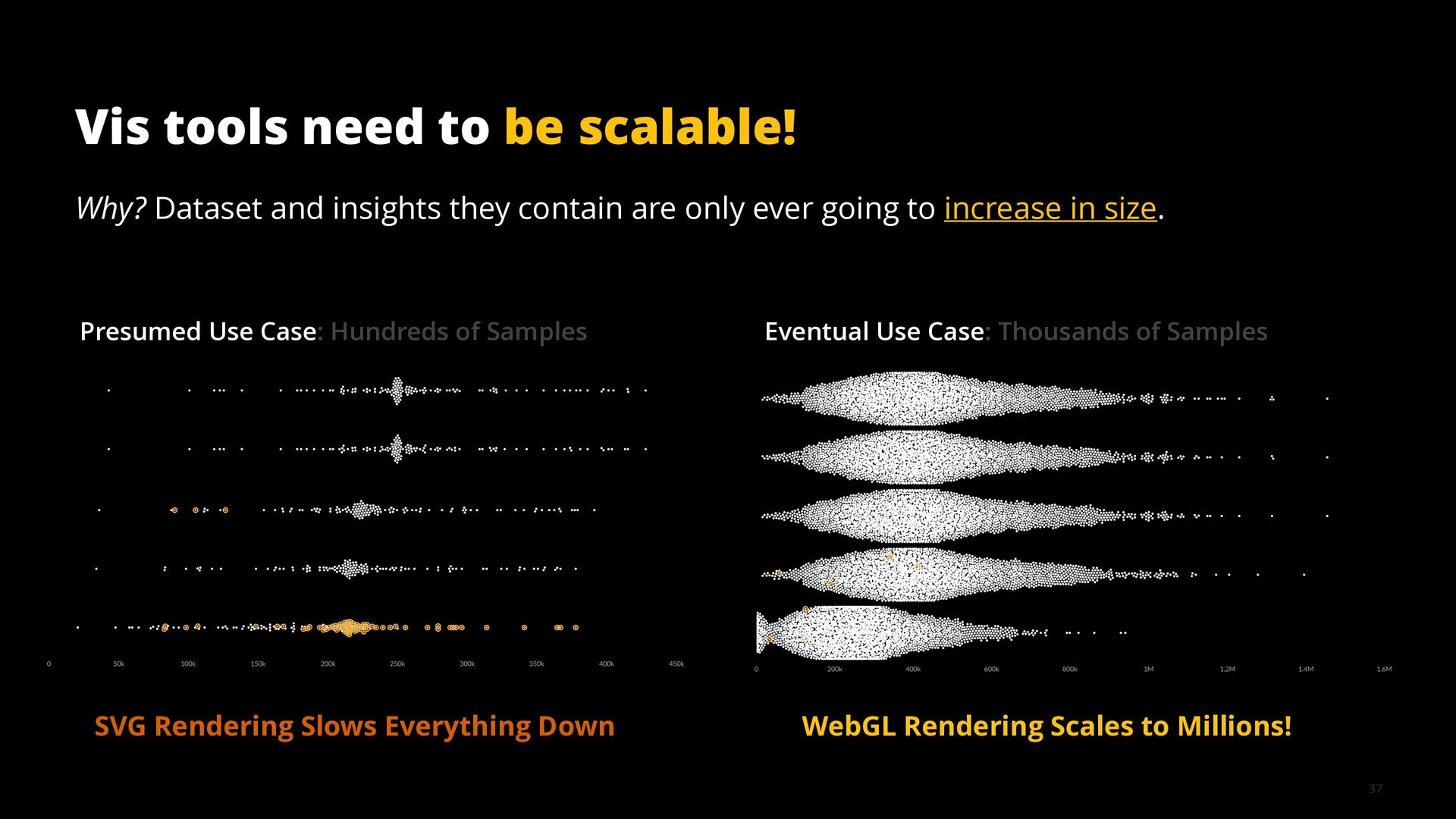 This talk illustrates these opportunities and challenges with examples from building visualization tools for scientific, analytical, and exploratory use cases.