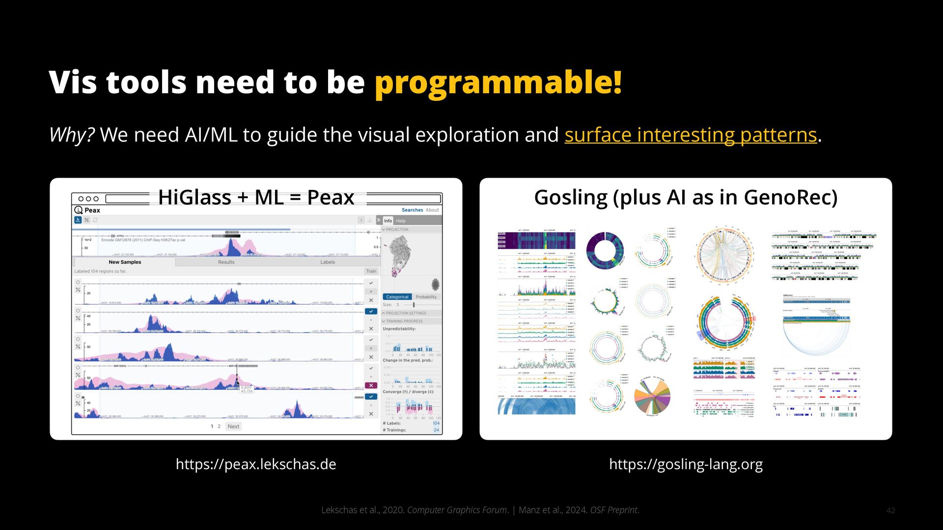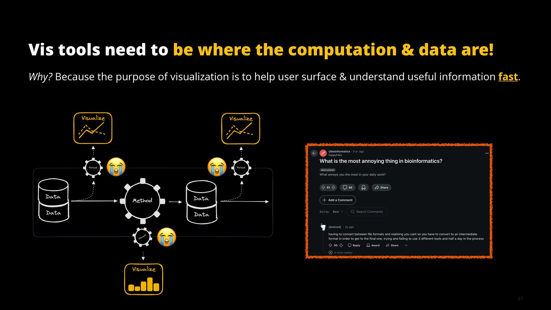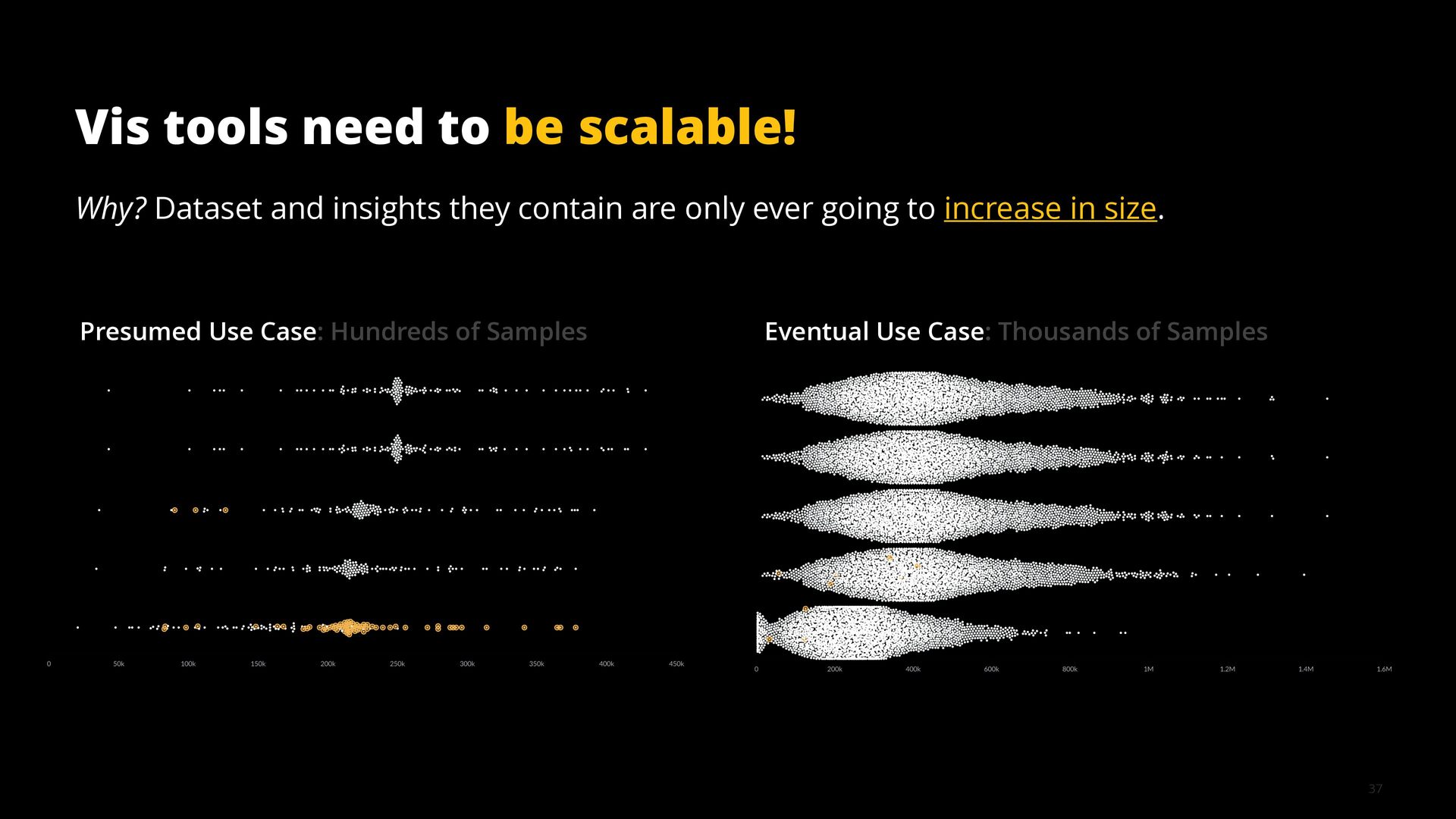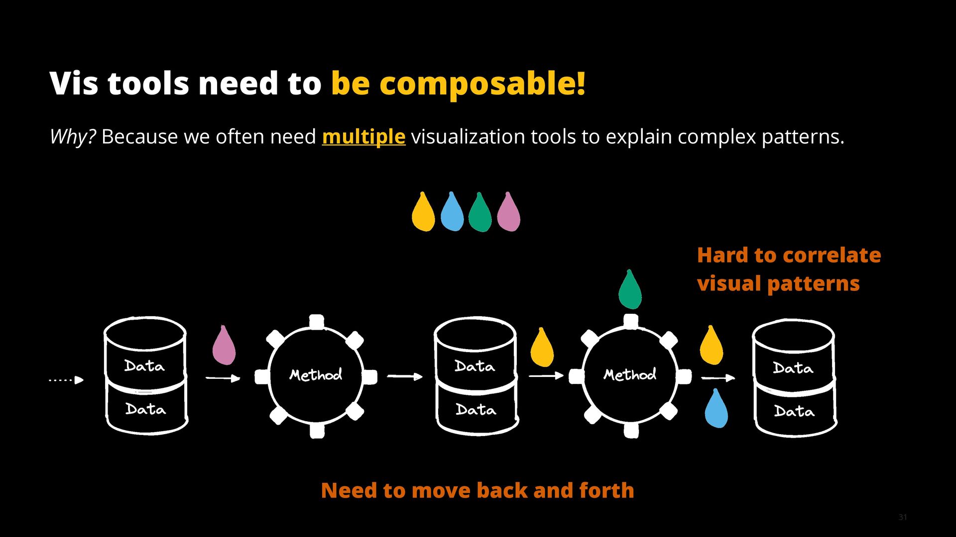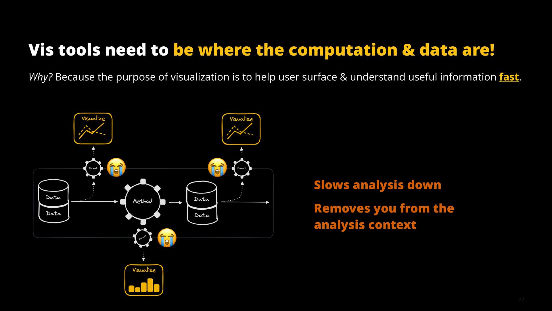 This talk illustrates these opportunities and challenges with examples from building visualization tools for scientific, analytical, and exploratory use cases.