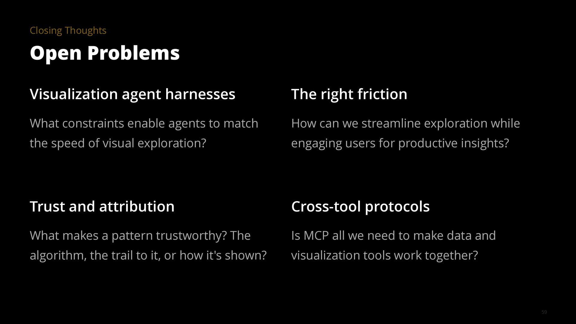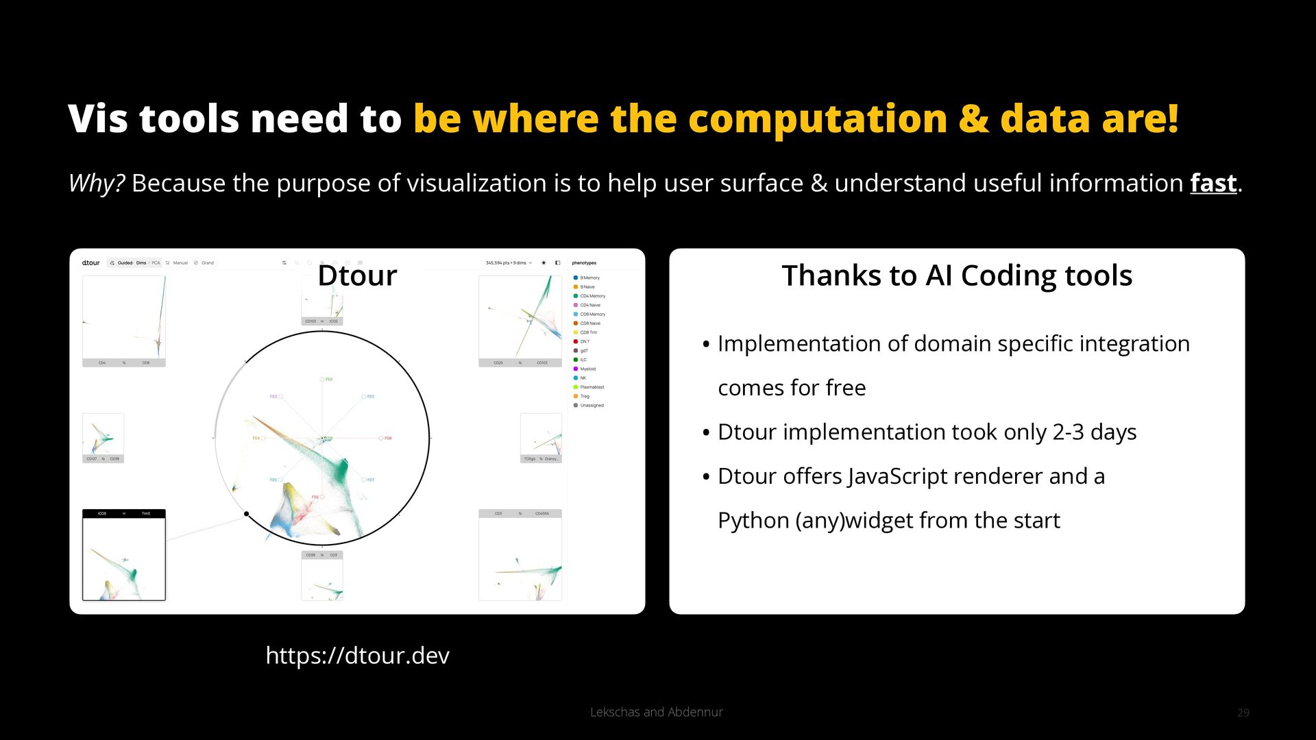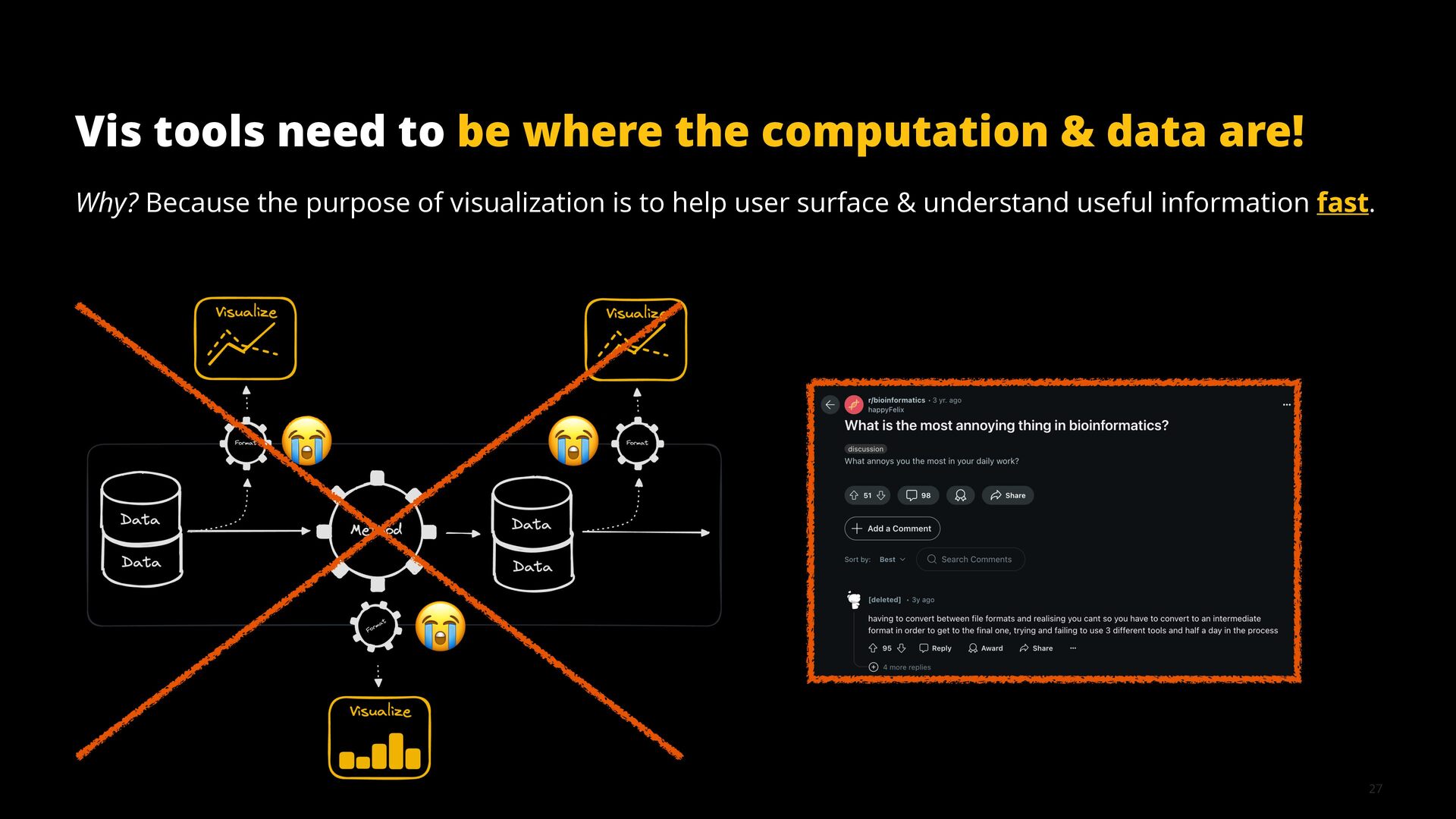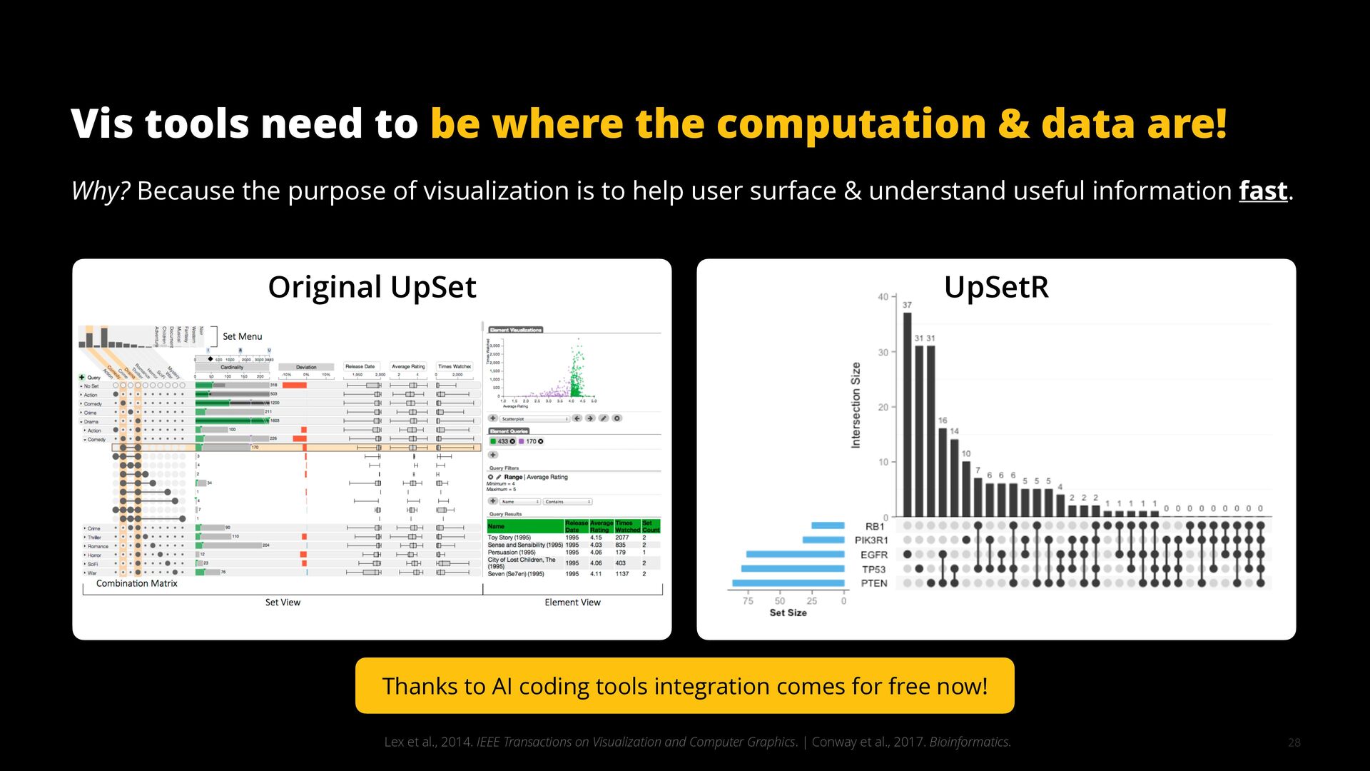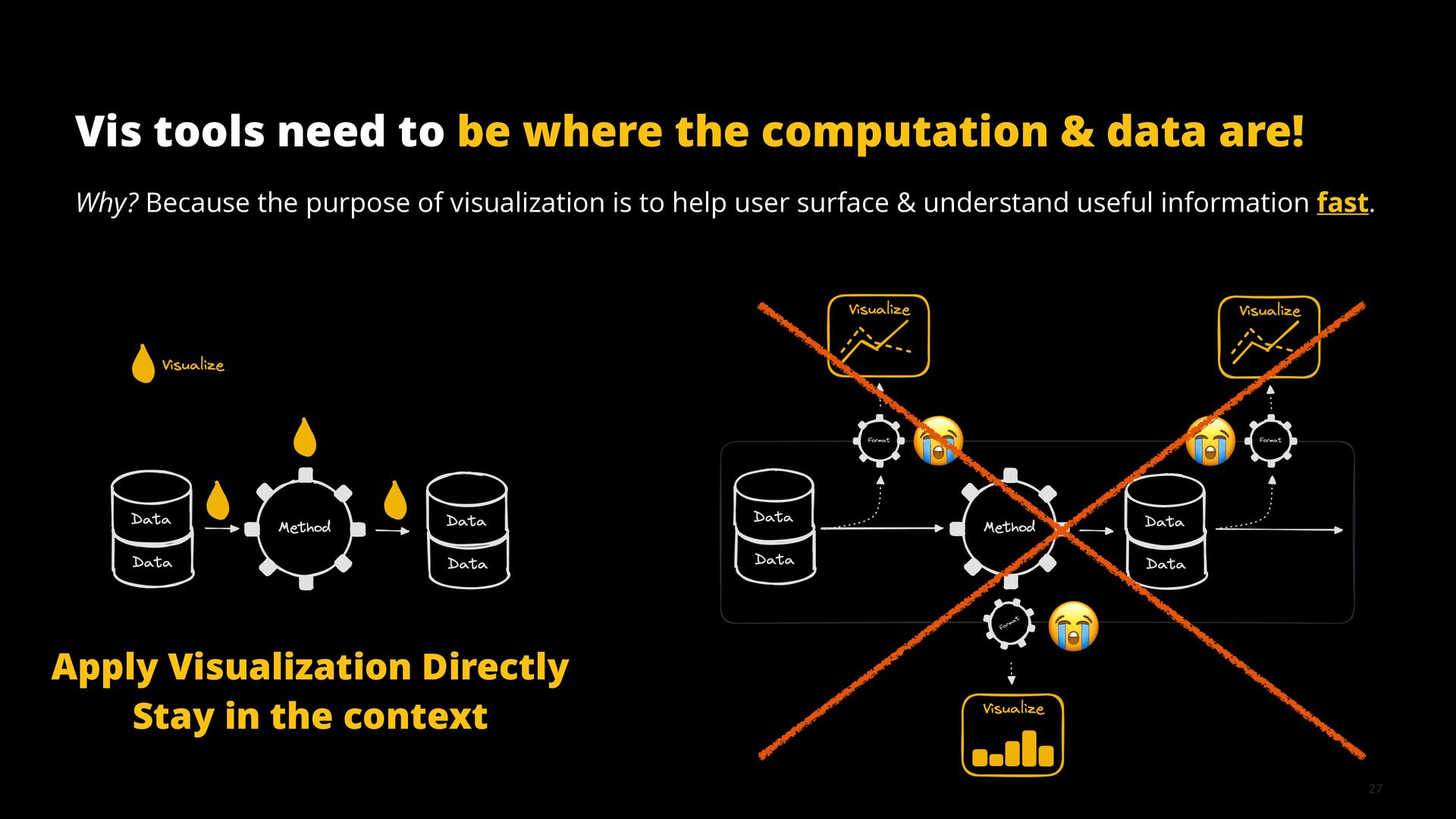 This talk illustrates these opportunities and challenges with examples from building visualization tools for scientific, analytical, and exploratory use cases.