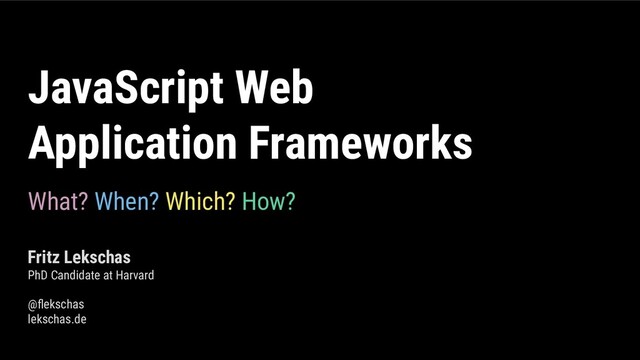 The web is emerging as the universal platform for running applications across nearly all kinds of operating systems. But developing web applications can be involved as many different features besides JavaScript need to be taken into account and different is no unified developer platform that provides a standard way. This let to the creation of many different JavaScript frameworks that set out to integrate and streamline the development of web applications. In this talk, I am going to talk about what a web application framework is,