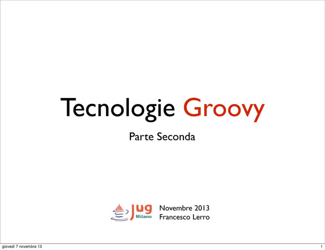 A talk given at JUG Milan (Italy) about Groovy peculiarities and its technology ecosystem. Slides are in Italian, sorry :)