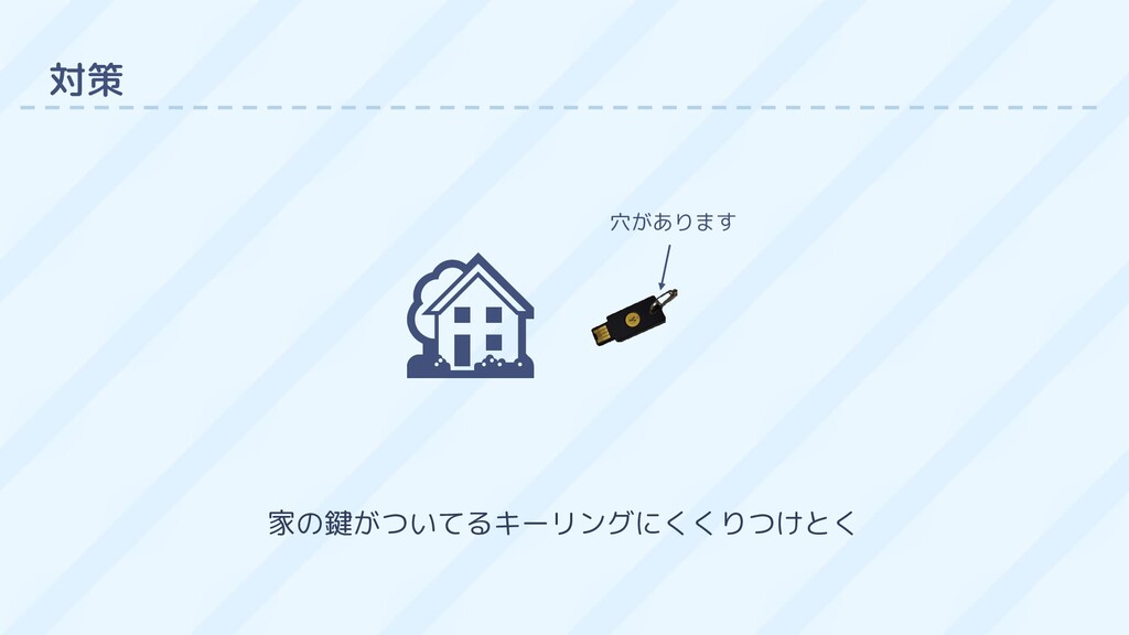 対策 家の鍵がついてるキーリングにくくりつけとく 🏡 穴があります