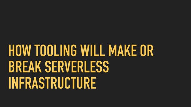 lowest common denominator ▸ In a Serverless infrastructure you’re not going to move Everything between providers ▸ Small surface area per provider ▸ You want to get all you can out of that provider so you need specialised tooling