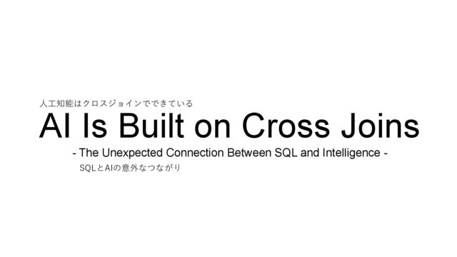 JOIN: Generates all possible combinations between two tables • Surprisingly, many AI systems begin by exploring every possibility • I’ll show how this applies in: • Delivery Scheduling • Reversi AI • Recommendation Systems • Neural Networks はじめに:CROSS JOINとは? すべての組み合わせを作る結合 実はこの「すべての組み合わせ」を考えるところから始まる 配送スケジュール/リバーシAI/推薦システム/ニューラルネットワークを題材に紹介!