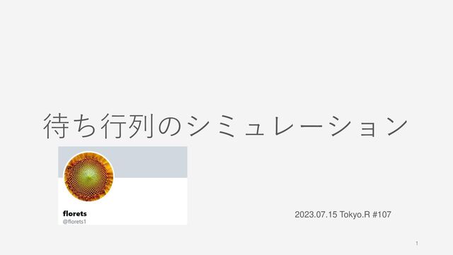 1 2023.07.15 Tokyo.R #107 待ち行列のシミュレーション