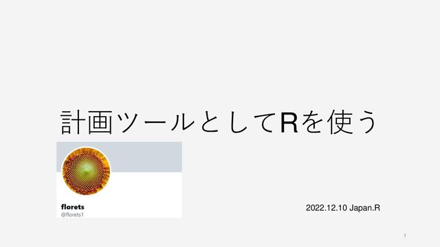 1 2022.12.10 Japan.R 計画ツールとしてRを使う