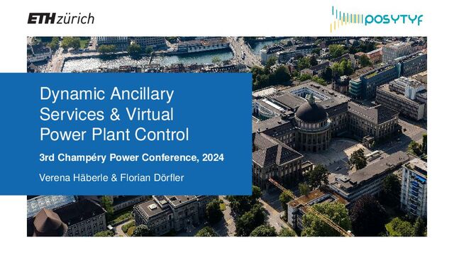 des (s) Tfq des (s) Tvq des (s) noncontrollable units 4 1 hydro BESS super- capacitor DVPP 10-2 100 102 10-3 10-2 10-1 100 101 grid-forming DVPP ∆fdes(s) ∆vdes(s) = Tdes(s) ∆p ∆q adaptive DPF active power before cloud during cloud spatially distributed POC 1 POC r remaining power system DVPP area ≈ Tdes(s) DVPP POC 1 POC r remaining power system DVPP area others • complex-frequency DVPP • DC DVPP • ... Häberle, V., Fisher, M., Prieto, E. & Dörfler, F. (2021). Control design of dynamic virtual power plants: an adaptive divide-&-conquer approach. IEEE Transactions on Power Systems. Häberle, V., Tayyebi, A., He, X., Prieto, E. & Dörfler, F. (2023). Grid-forming & spatially distributed control design of dynamic virtual power plants. IEEE Transactions on Smart Grid. Domingo-Enrich, R., Häberle, V., He, X., Prieto-Araujo, E. & Dörfler, F. (2023). Complex frequency control of dynamic virtual power plants. Master Thesis. 12/21