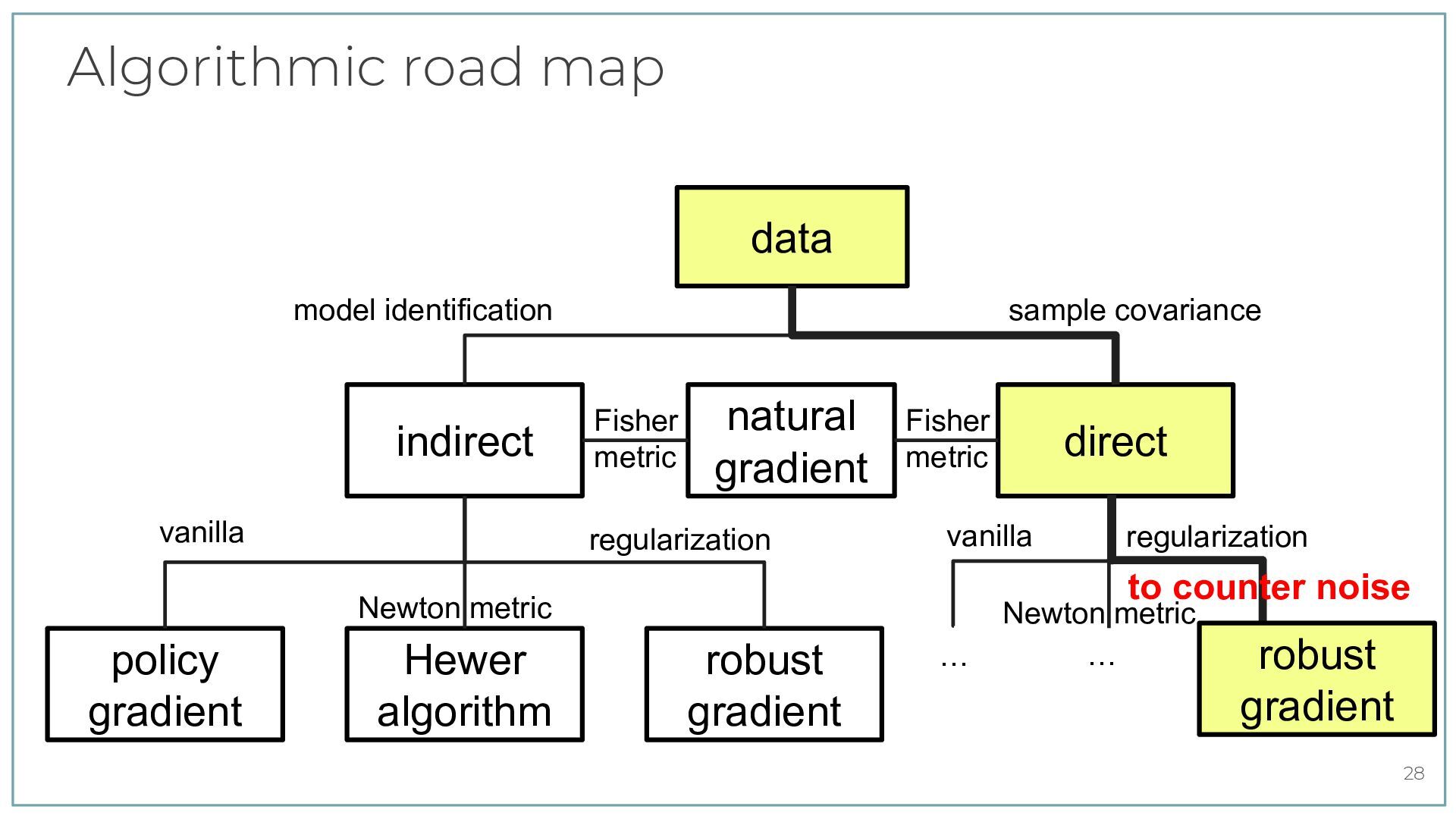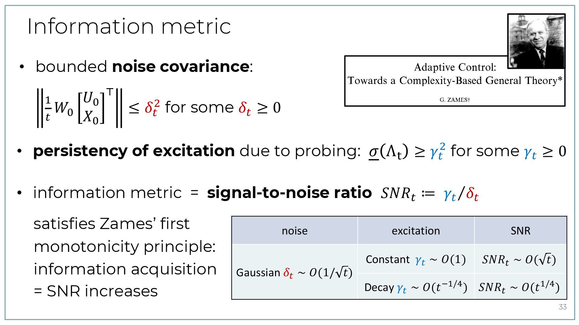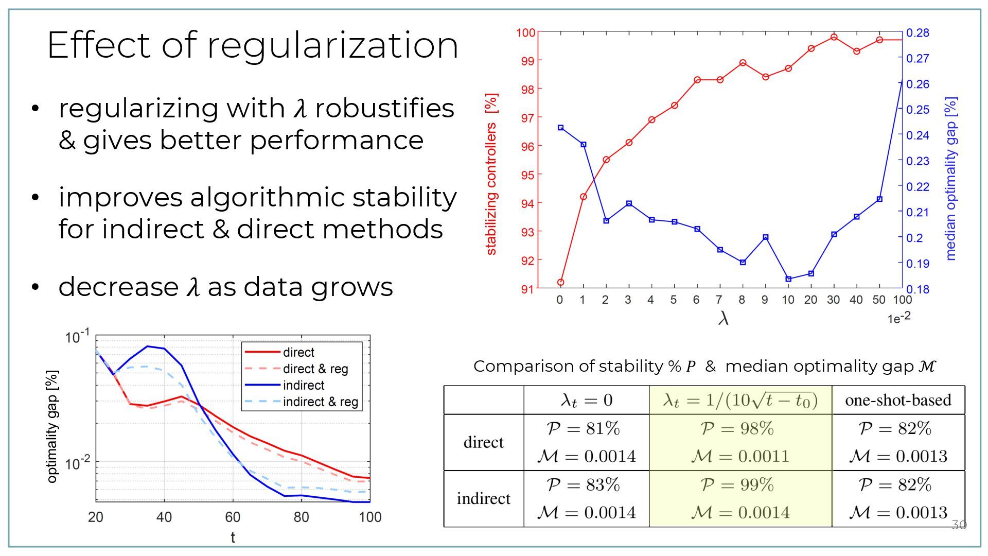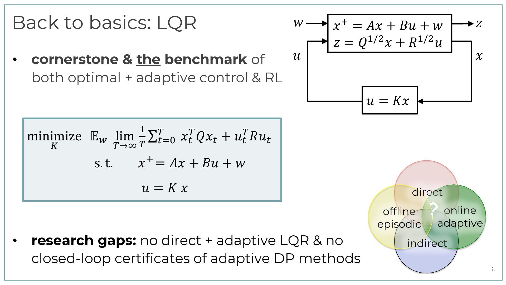 [email protected]>. Proceedings of the 37th International Conference on Machine Learning, Vienna, Austria, PMLR 119, 2020. Copyright 2020 by the author(s). Confidence-based exploration. Bittanti et al. (2006) intro- duced an adaptive control system based on the “bet on best” principle and proved asymptotic performance guarantees showing that their method would eventually converge to the optimal control. Abbasi-Yadkori & Szepesvári (2011) later proved a finite-time e O( p T) regret bound for OFU-LQ, later generalized to less restrictive stabilization and noise assumptions by Faradonbeh et al. (2017). Unfortunately, nei- ther exploration strategy comes with a computationally effi- cient algorithm to solve the optimistic LQR, and thus they cannot be directly implemented. On the TS side, Ouyang et al. (2017) proved a e O( p T) regret for the Bayesian regret, while Abeille & Lazaric (2018) showed that a similar bound holds in the frequentist case but restricted to 1-dimensional problems. While TS-based approaches require solving a single (random) LQR, the theoretical analysis of Abeille & Lazaric (2018) suggests that a new LQR instance should be solved at each time step, thus leading to a computational complexity growing linearly with the total number of steps. On the other hand, OFU-based methods allow for “lazy” updates, which require solving an optimistic LQR only a logarithmic number of times w.r.t. the total number of steps. A similar lazy-update scheme is used by Dean et al. (2018), who leveraged robust control theory to devise the first learn- ing algorithm with polynomial complexity and sublinear regret. Nonetheless, the resulting adaptive algorithm suffers from a e O(T2/3) regret, which is significantly worse than the e O( p T) achieved by OFU-LQ. To the best of our knowledge, the only efficient algorithm for confidence-based exploration with e O( p T) regret has been recently proposed by Cohen et al. (2019). Their method, called OSLO, leverages an SDP formulation of the LQ prob- lem, where an optimistic version of the constraints is used. As such, it translates the original non-convex OFU-LQ opti- mization problem into a convex SDP. While solving an SDP is known to have polynomial complexity, no explicit analysis is provided and it is said that the runtime may scale polyno- mially with LQ-specific parameters and the time horizon T (Cor. 5), suggesting that OSLO may become impractical for moderately large T. Furthermore, OSLO requires an initial system identification phase of length e O( p T) to properly initialize the method. This strong requirement effectively reduces OSLO to an explore-then-commit strategy, whose arXiv:2007.06482v1 [stat.ML] 13 Jul 2020 Harnessing Uncertainty for a Separation Principle in Direct Data-Driven Predictive Control ω Alessandro Chiuso a, Marco Fabris a, Valentina Breschi b, Simone Formentin c aDepartment of Information Engineering, University of Padova, Via Gradenigo 6/b, 35131 Padova, Italy. bDepartment of Electrical Engineering, Eindhoven University of Technology, 5600 MB Eindhoven, The Netherlands. cDipartimento di Elettronica, Informazione e Bioingegneria, Politecnico di Milano, P.za L. Da Vinci, 32, 20133 Milano, Italy. Abstract Model Predictive Control (MPC) is a powerful method for complex system regulation, but its reliance on an accurate model poses many limitations in real-world applications. Data-driven predictive control (DDPC) aims at overcoming this limitation, by relying on historical data to provide information on the plant to be controlled. In this work, we present a unified stochastic framework for direct DDPC, where control actions are obtained by optimizing the Final Control Error (FCE), which is directly computed from available data only and automatically weighs the impact of uncertainty on the control objective. Our framework allows us to establish a separation principle for Predictive Control, elucidating the role that predictive models and their uncertainty play in DDPC. Moreover, it generalizes existing DDPC methods, like regularized Data-enabled Predictive Control (DeePC) and ω-DDPC, providing a path toward noise-tolerant data-based control with rigorous optimality guarantees. The theoretical investigation is complemented by a series of experiments (code available on GitHub), revealing that the proposed method consistently outperforms or, at worst, matches existing techniques without requiring tuning regularization parameters as other methods do. Key words: data-driven predictive control, control of constrained systems, regularization, identification for control 1 Introduction Model Predictive Control (MPC) has earned recognition as a powerful technology for optimizing the regulation of complex systems, owing to its flexible formulation and constraint-handling capabilities [26]. However, its e!ec- tiveness is contingent on the accuracy of the predictor based on which control actions are optimized [6]. This native to traditional MPC, see [5,8,12]. DDPC directly maps data collected o”ine onto the control sequence starting from the current measurements, without the need for an intermediate identification phase. In the lin- ear time-invariant setting, mathematical tools such as the “fundamental lemma” [33] and linear algebra-based subspace and projection methods [32] represent the en- abling technology for data-driven control [8,15] also pro- Xiv:2312.14788v3 [eess.SY] 7 Jan 2025 Related to trajectory matrices, but • matrices independent of data size • uniqueness & no regularization • recursive rank-1 updates 1 Formulas for Data-driven Control: Stabilization, Optimality and Robustness C. De Persis and P. Tesi Abstract—In a paper by Willems and coauthors it was shown control theory [6], iterative feedback tuning [7], and virtual On the Certainty-Equivalence Approach to Direct Data-Driven LQR Design Florian D¨ orfler, Pietro Tesi, and Claudio De Persis Abstract—The linear quadratic regulator (LQR) problem 