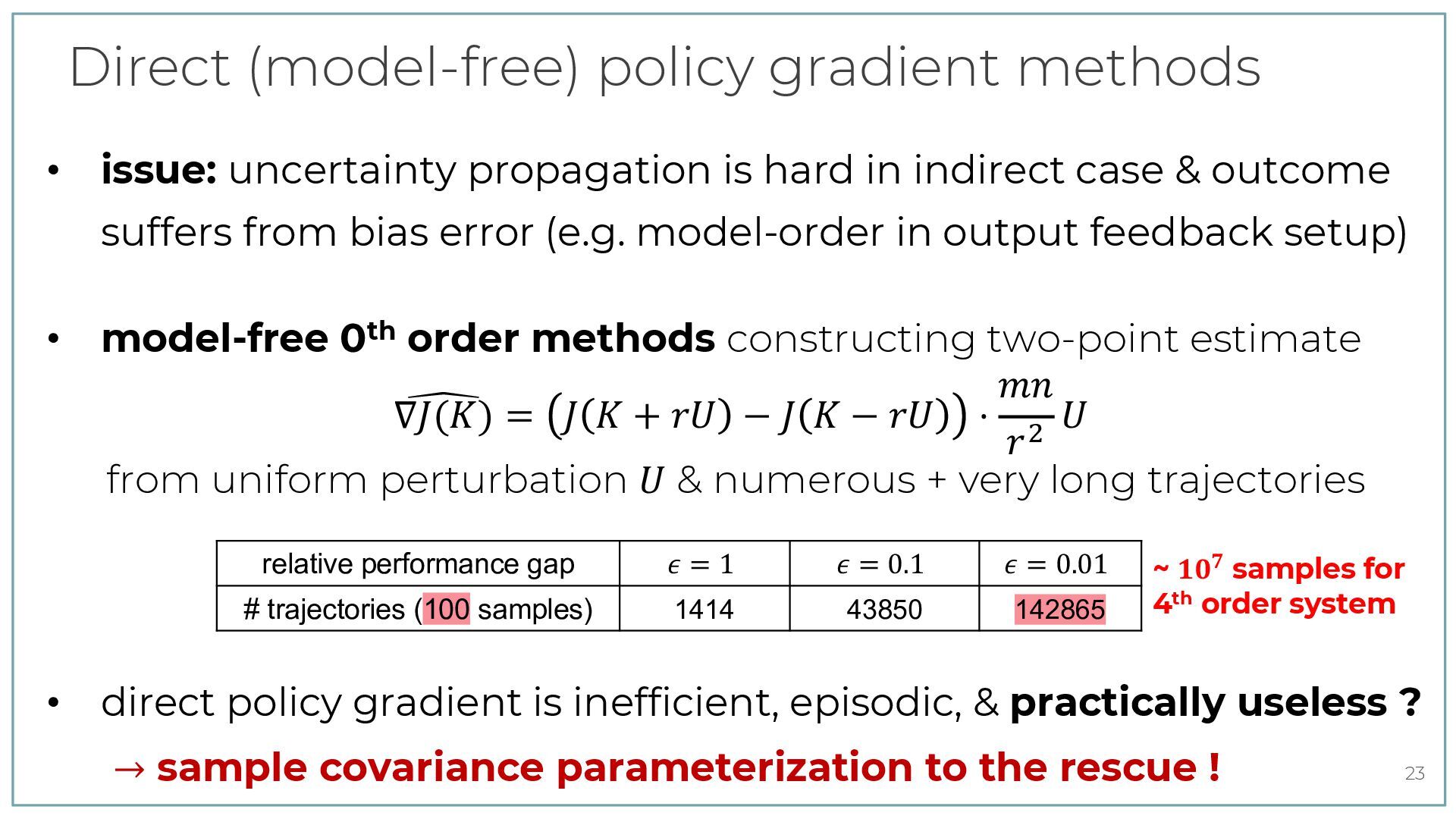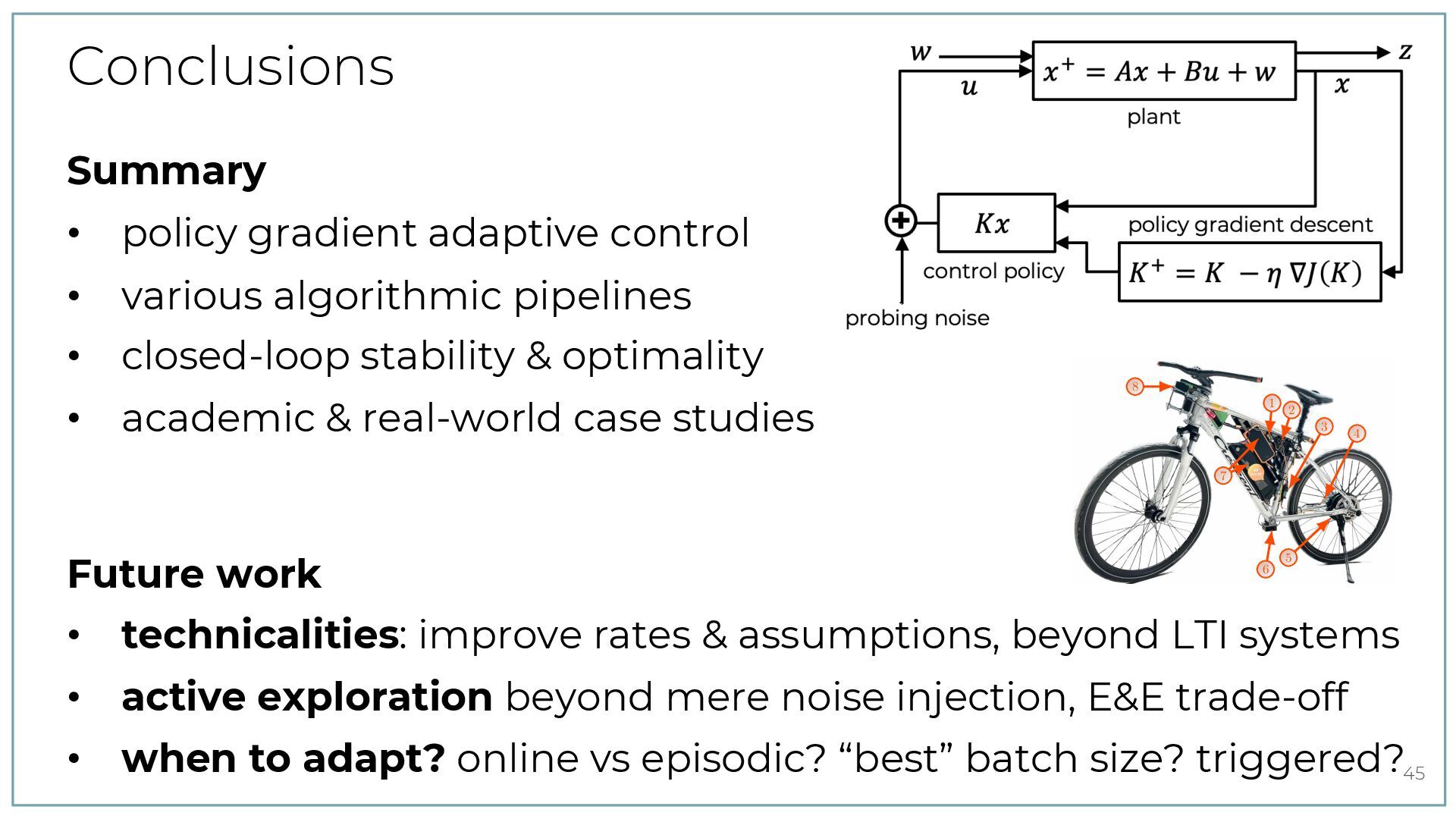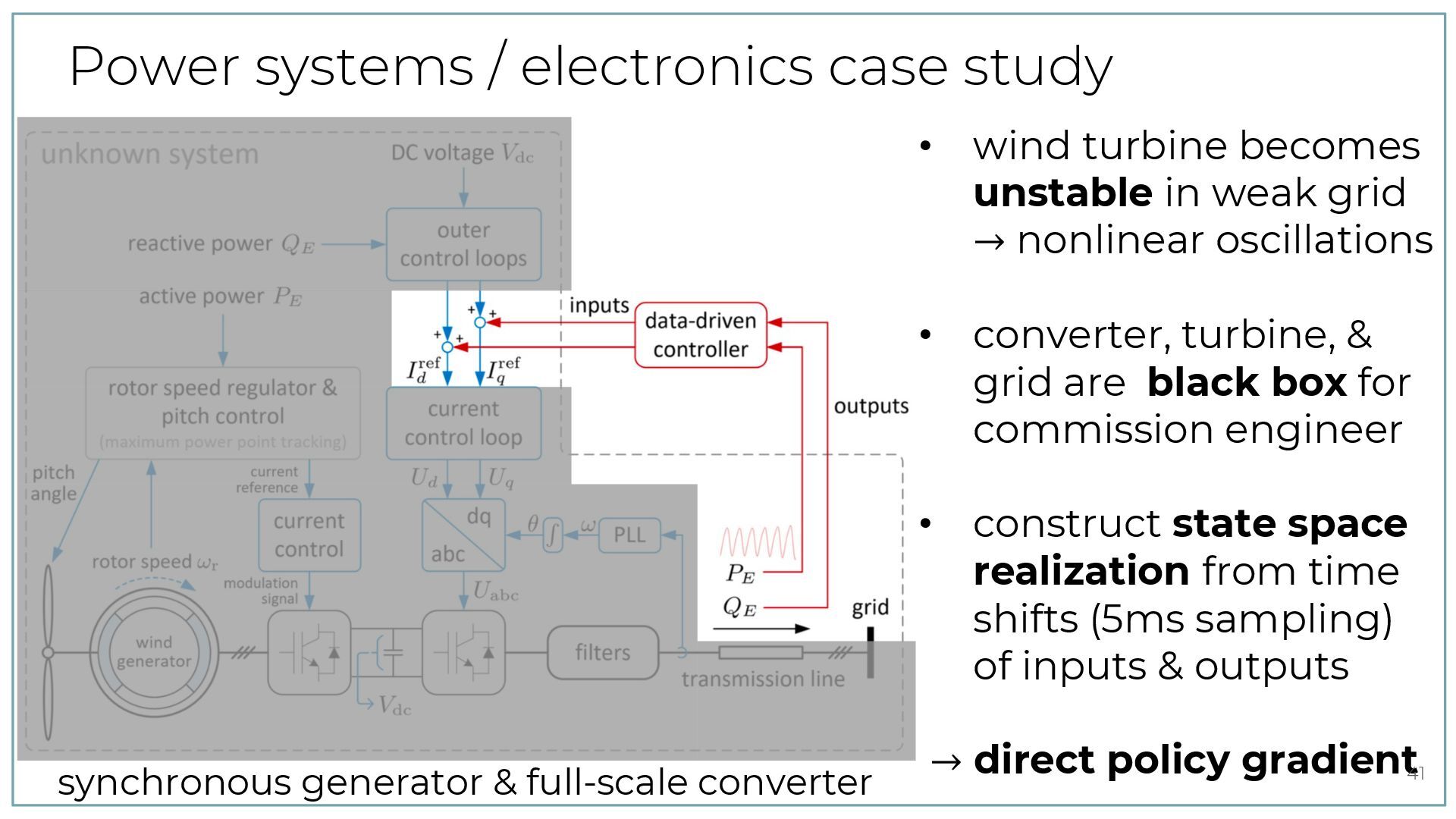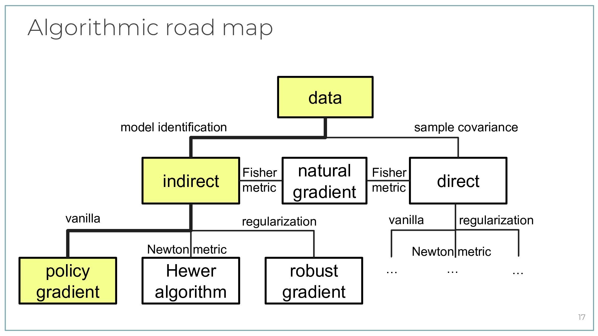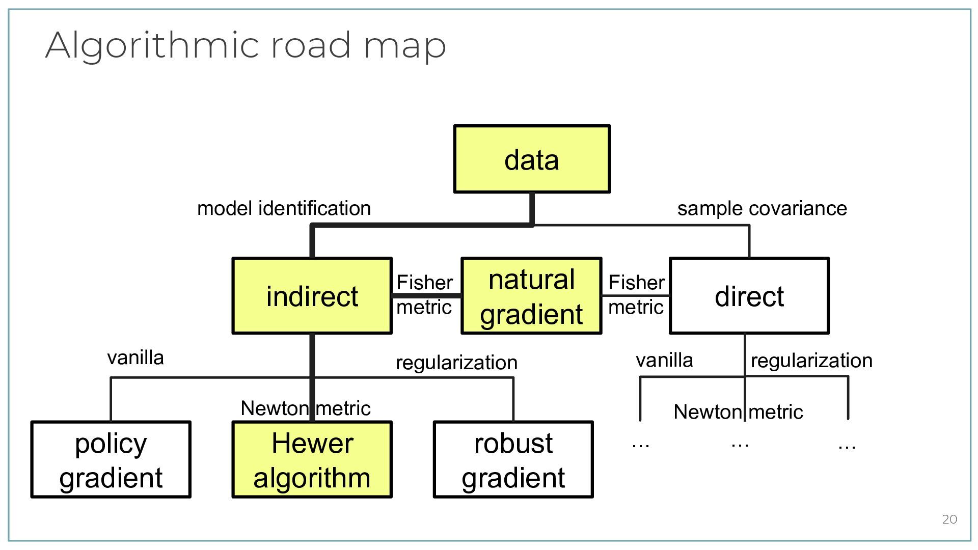 [email protected]>. Proceedings of the 37th International Conference on Machine Learning, Vienna, Austria, PMLR 119, 2020. Copyright 2020 by the author(s). Confidence-based exploration. Bittanti et al. (2006) intro- duced an adaptive control system based on the “bet on best” principle and proved asymptotic performance guarantees showing that their method would eventually converge to the optimal control. Abbasi-Yadkori & Szepesvári (2011) later proved a finite-time e O( p T) regret bound for OFU-LQ, later generalized to less restrictive stabilization and noise assumptions by Faradonbeh et al. (2017). Unfortunately, nei- ther exploration strategy comes with a computationally effi- cient algorithm to solve the optimistic LQR, and thus they cannot be directly implemented. On the TS side, Ouyang et al. (2017) proved a e O( p T) regret for the Bayesian regret, while Abeille & Lazaric (2018) showed that a similar bound holds in the frequentist case but restricted to 1-dimensional problems. While TS-based approaches require solving a single (random) LQR, the theoretical analysis of Abeille & Lazaric (2018) suggests that a new LQR instance should be solved at each time step, thus leading to a computational complexity growing linearly with the total number of steps. On the other hand, OFU-based methods allow for “lazy” updates, which require solving an optimistic LQR only a logarithmic number of times w.r.t. the total number of steps. A similar lazy-update scheme is used by Dean et al. (2018), who leveraged robust control theory to devise the first learn- ing algorithm with polynomial complexity and sublinear regret. Nonetheless, the resulting adaptive algorithm suffers from a e O(T2/3) regret, which is significantly worse than the e O( p T) achieved by OFU-LQ. To the best of our knowledge, the only efficient algorithm for confidence-based exploration with e O( p T) regret has been recently proposed by Cohen et al. (2019). Their method, called OSLO, leverages an SDP formulation of the LQ prob- lem, where an optimistic version of the constraints is used. As such, it translates the original non-convex OFU-LQ opti- mization problem into a convex SDP. While solving an SDP is known to have polynomial complexity, no explicit analysis is provided and it is said that the runtime may scale polyno- mially with LQ-specific parameters and the time horizon T (Cor. 5), suggesting that OSLO may become impractical for moderately large T. Furthermore, OSLO requires an initial system identification phase of length e O( p T) to properly initialize the method. This strong requirement effectively reduces OSLO to an explore-then-commit strategy, whose arXiv:2007.06482v1 [stat.ML] 13 Jul 2020 Harnessing Uncertainty for a Separation Principle in Direct Data-Driven Predictive Control ω Alessandro Chiuso a, Marco Fabris a, Valentina Breschi b, Simone Formentin c aDepartment of Information Engineering, University of Padova, Via Gradenigo 6/b, 35131 Padova, Italy. bDepartment of Electrical Engineering, Eindhoven University of Technology, 5600 MB Eindhoven, The Netherlands. cDipartimento di Elettronica, Informazione e Bioingegneria, Politecnico di Milano, P.za L. Da Vinci, 32, 20133 Milano, Italy. Abstract Model Predictive Control (MPC) is a powerful method for complex system regulation, but its reliance on an accurate model poses many limitations in real-world applications. Data-driven predictive control (DDPC) aims at overcoming this limitation, by relying on historical data to provide information on the plant to be controlled. In this work, we present a unified stochastic framework for direct DDPC, where control actions are obtained by optimizing the Final Control Error (FCE), which is directly computed from available data only and automatically weighs the impact of uncertainty on the control objective. Our framework allows us to establish a separation principle for Predictive Control, elucidating the role that predictive models and their uncertainty play in DDPC. Moreover, it generalizes existing DDPC methods, like regularized Data-enabled Predictive Control (DeePC) and ω-DDPC, providing a path toward noise-tolerant data-based control with rigorous optimality guarantees. The theoretical investigation is complemented by a series of experiments (code available on GitHub), revealing that the proposed method consistently outperforms or, at worst, matches existing techniques without requiring tuning regularization parameters as other methods do. Key words: data-driven predictive control, control of constrained systems, regularization, identification for control 1 Introduction Model Predictive Control (MPC) has earned recognition as a powerful technology for optimizing the regulation of complex systems, owing to its flexible formulation and constraint-handling capabilities [26]. However, its e!ec- tiveness is contingent on the accuracy of the predictor based on which control actions are optimized [6]. This native to traditional MPC, see [5,8,12]. DDPC directly maps data collected o”ine onto the control sequence starting from the current measurements, without the need for an intermediate identification phase. In the lin- ear time-invariant setting, mathematical tools such as the “fundamental lemma” [33] and linear algebra-based subspace and projection methods [32] represent the en- abling technology for data-driven control [8,15] also pro- Xiv:2312.14788v3 [eess.SY] 7 Jan 2025 Related to trajectory matrices, but • matrices independent of data size • uniqueness & no regularization • recursive rank-1 updates 1 Formulas for Data-driven Control: Stabilization, Optimality and Robustness C. De Persis and P. Tesi Abstract—In a paper by Willems and coauthors it was shown control theory [6], iterative feedback tuning [7], and virtual On the Certainty-Equivalence Approach to Direct Data-Driven LQR Design Florian D¨ orfler, Pietro Tesi, and Claudio De Persis Abstract—The linear quadratic regulator (LQR) problem 