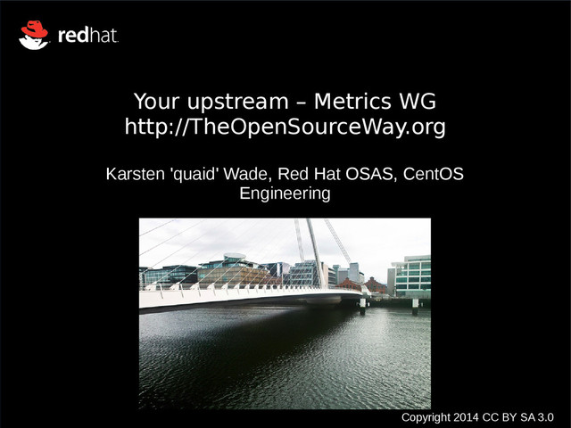 WG http://www.theopensourceway.org/wiki/ Metrics_WG - a needed niche - invited many working in silos - ebb & flow - & now? I'm taking on TOSW work again, interested in help leading & growing the WG.