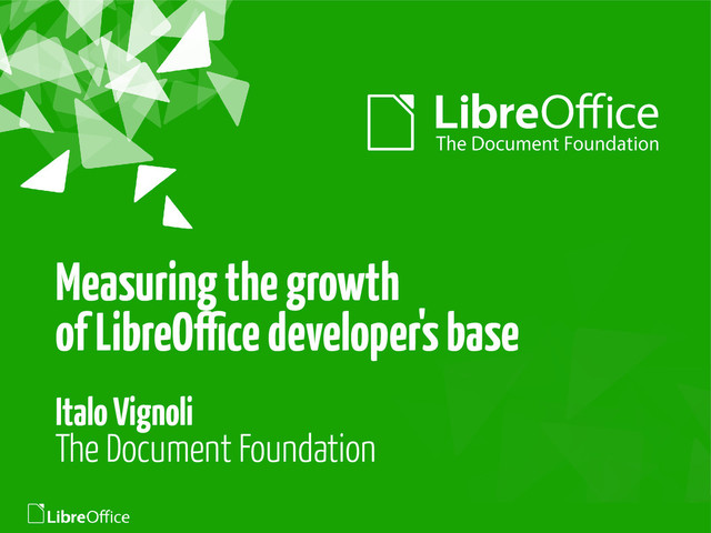 LibreOffice forked the OOo code betting on the growth of the first 20 developers. Thanks to a number of strategic moves, the project managed to attract 80 new developers during the first month, and 3 or more new developers each month for 44 months in a row. How we have measured the growth to motivate additional developers to join the project.