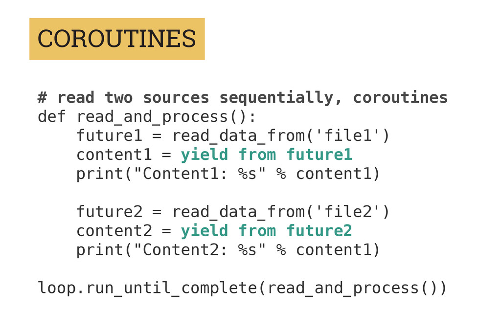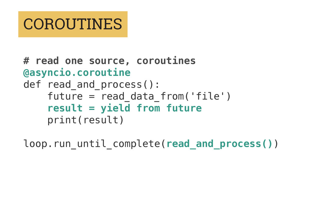 Асинхронный код — просто и эффективно. Tulip позволяет писать приложения, которые используют возможности ОС для асинхронного ввода/вывода. Фреймворк станет частью Python 3.4. Доклад о том, как устроен Tulip и как им пользоваться.