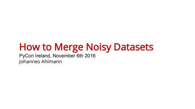 This talk gives an overview of Probabilistic Record Matching, i.e. the challenges posed when dealing with noisy data, how to normalize data and how to match noisy records to each other.