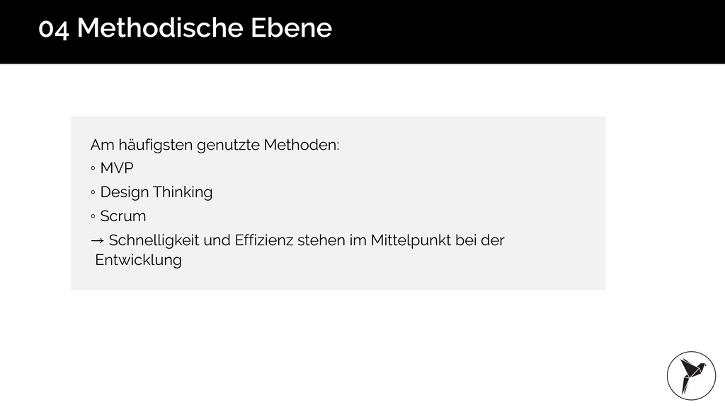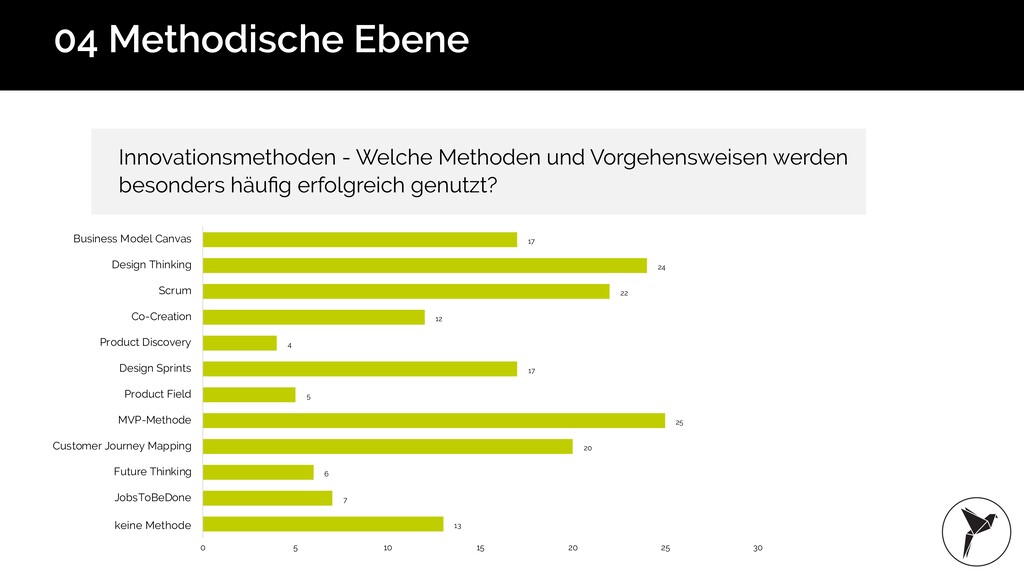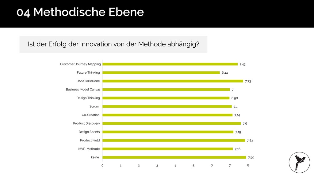 eine Methode → individuelle Anpassung an Projekt ◦ Externe Berater und Freelancer nutzen im Schnitt mehr Methoden ◦ Unternehmen selber und Agenturen setzen auf festes Portfolio an Methoden