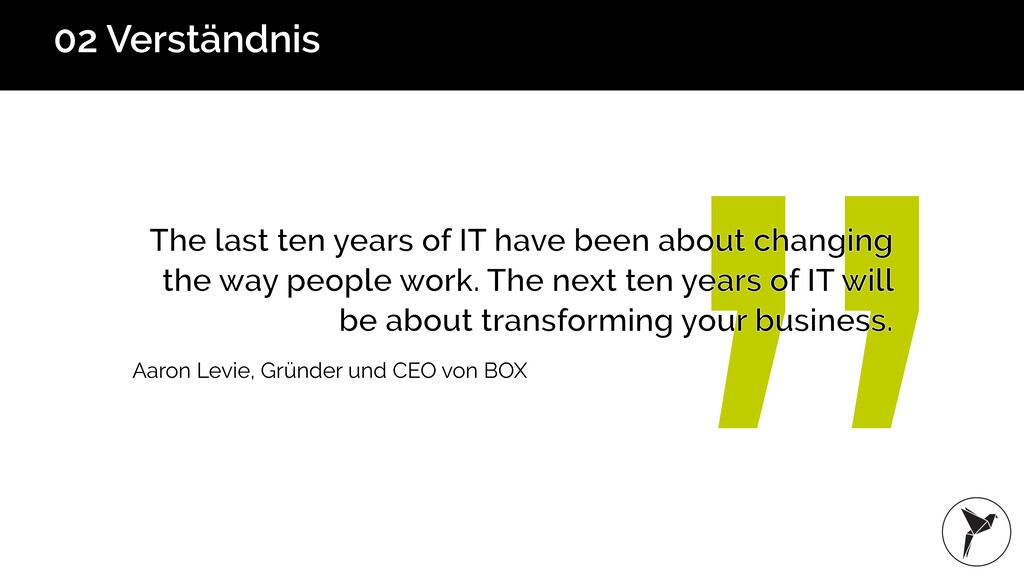 wichtig: ◦ Das richtige Mindset ◦ Gut zusammengestelltes Team mit den richtigen Kompetenzen ◦ Mut zur Umsetzung ◦ Sinnstiftende Innovation ◦ Klare Vision