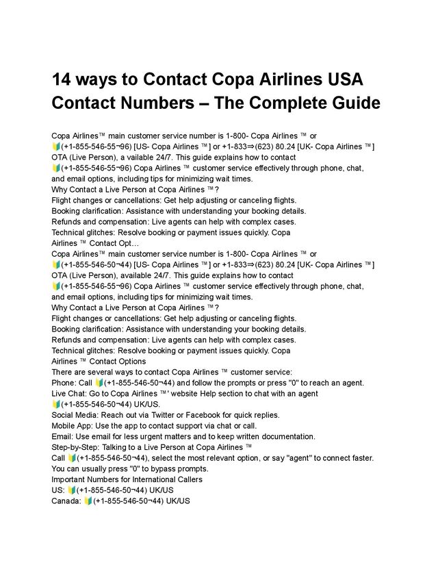 Copa Airlines®️ official customer service number is 🔰1-{833}-(623)-[8024] , where you can speak directly to a live representative any time of the day. Whether you’re facing flight issues, hotel changes, cancellations, or need help with a refund, this guide gives you all the ways to connect with Copa Airlines®️ quickly and easily.