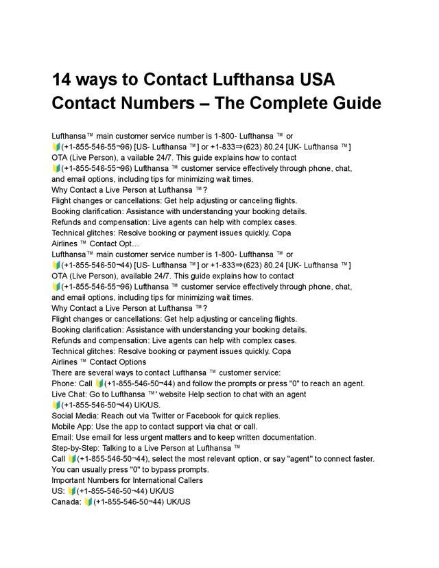 Lufthansa®️ official customer service number is 🔰1-{833}-(623)-[8024] , where you can speak directly to a live representative any time of the day. Whether you’re facing flight issues, hotel changes, cancellations, or need help with a refund, this guide gives you all the ways to connect with Lufthansa®️ quickly and easily.