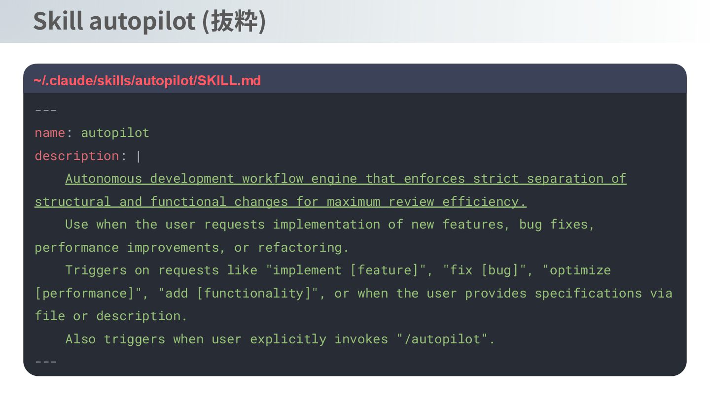 workflow engine that enforces strict separation of structural and functional changes for maximum review efficiency. Use when the user requests implementation of new features, bug fixes, performance improvements, or refactoring. Triggers on requests like "implement [feature]", "fix [bug]", "optimize [performance]", "add [functionality]", or when the user provides specifications via file or description. Also triggers when user explicitly invokes "/autopilot". --- ~/.claude/skills/autopilot/SKILL.md