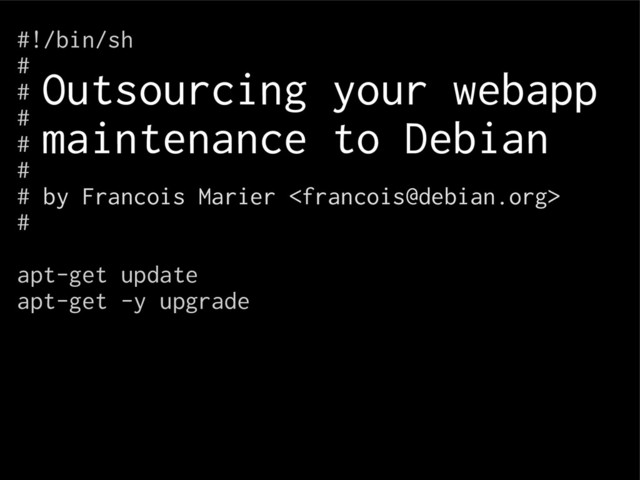 This talk will examine the decision that the Libravatar project made to outsource much of its maintenance burden to Debian by using system packages for almost everything.