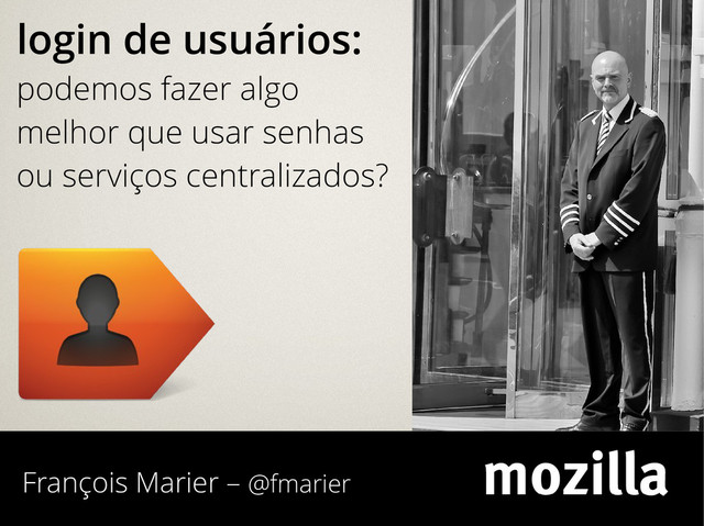 Websites that need to identify their users commonly use one of two methods: a username & password scheme that's hard to secure and creates a lot of pain for users, or a centralized proprietary service on which many of their users already have accounts. There must a better way. A cross-browser solution for authenticating users which feels like the Web and preserves the decentralized architecture necessary for an open network. We present Mozilla Persona.
