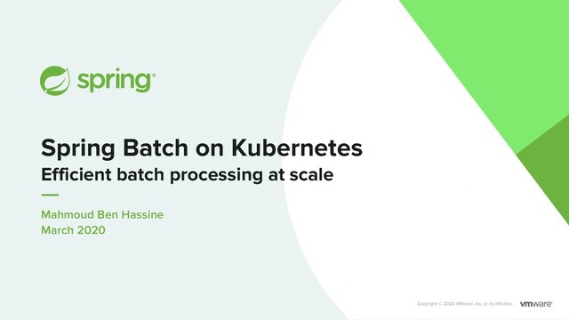 • Remote chunking/partitioning • Java 5 • Spring Framework 3 v2.0 Apr 11, 2009 • Initial APIs • Item-oriented processing • XML configuration • Java 1.4 • Spring Framework 2.5 • Java configuration • Spring Data support • Non-identifying Job params • AMQP support • SQLFire support • Job scope • JSR-352 support • SQLite support • Spring Batch Integration • Spring Boot support • Builders for readers • Builders for writers • Java 8 • Spring Framework 5 v3.0 May 22, 2014 v1.0 Mar 28, 2008 v2.2 Jun 05, 2013 v4.0 Dec 1, 2017