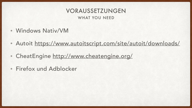 Der will doch nur spielen! In diesem Workshop erhaltet Ihr einen Einblick in die verschiedenen Aspekte des Gamebotting in Onlinespielen. Anhand von echten Beispielen werden verschiedene Bot-Typen wie Pixel-, Memory- und Packetbots angeschaut und einen kleinen Abstecher in andere lohnenswerte Memorymanipulationen gemacht. Holt euch Euren unfairen Vorteil!