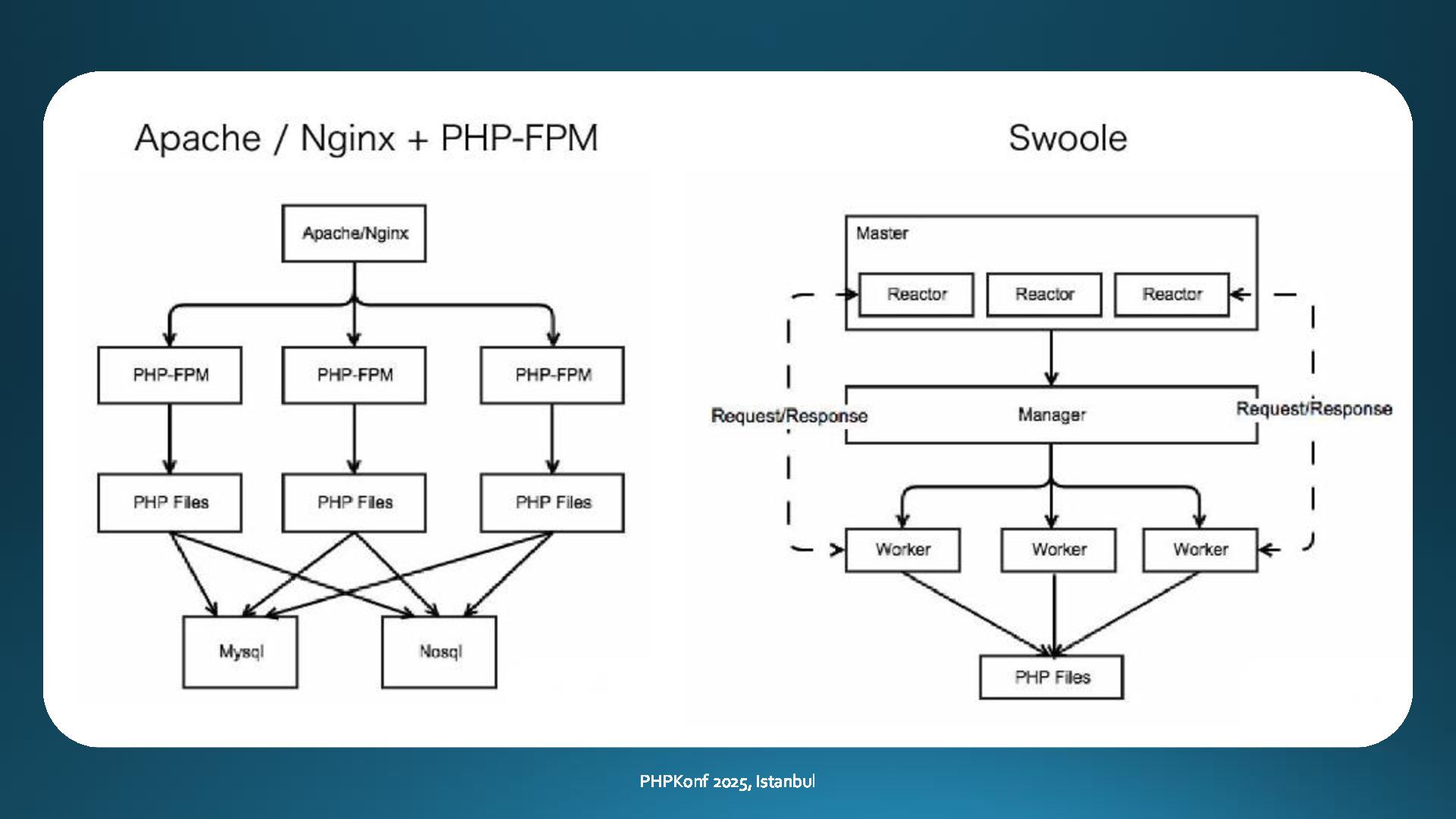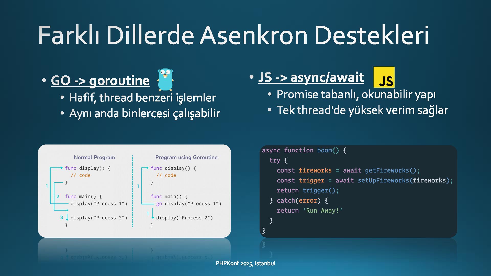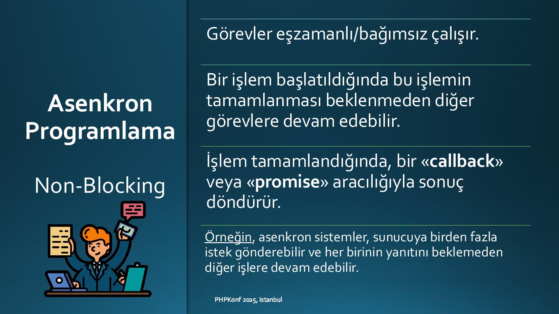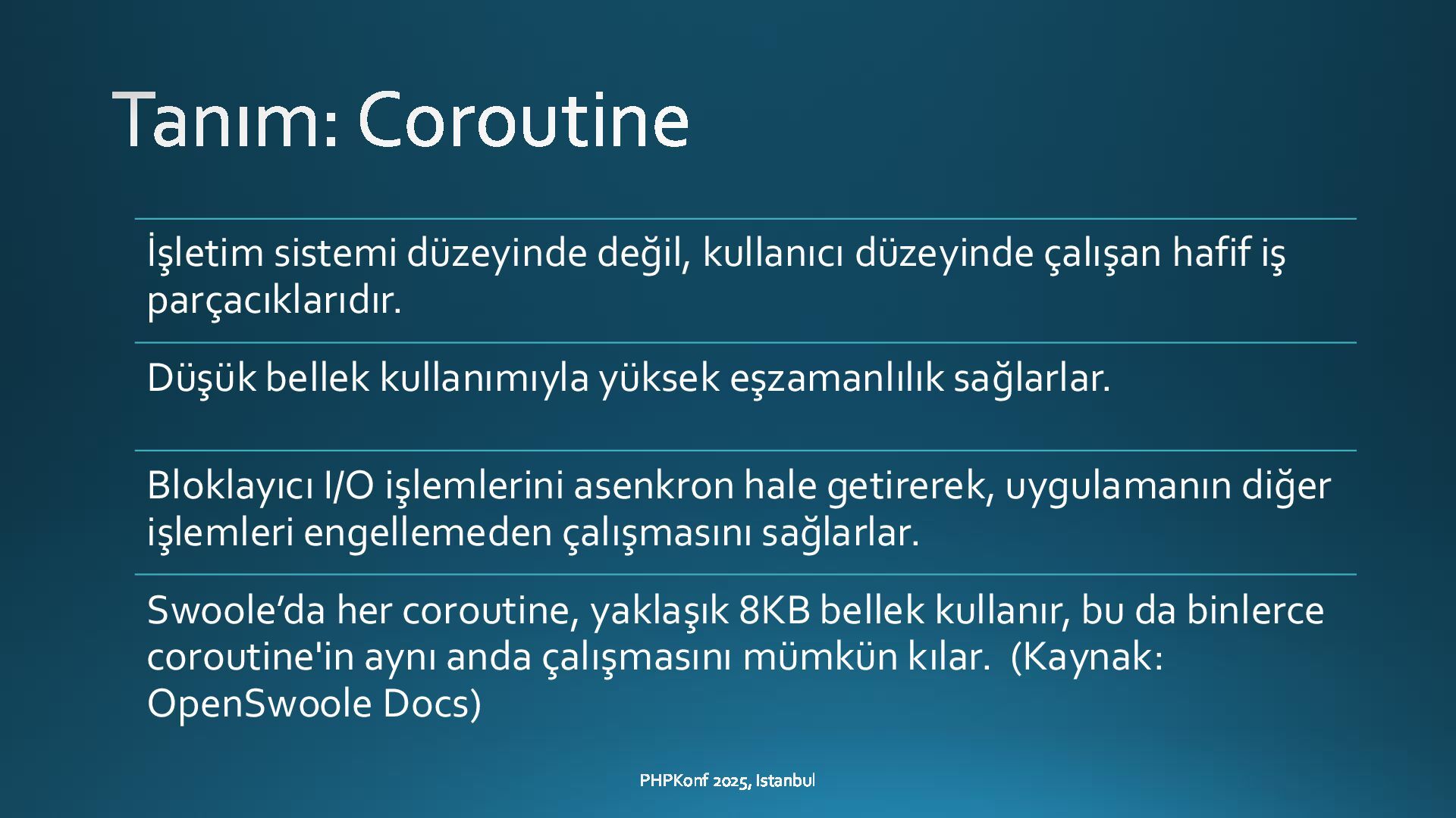 This presentation, delivered at PHPKonf 2025 in Istanbul, provides an in-depth exploration of asynchronous programming in PHP—an area where the language has historically lagged behind more modern alternatives like Node.js or Go. With the rise of Swoole and improvements in PHP 8.x, asynchronous capabilities in PHP are now more accessible, powerful, and practical than ever.