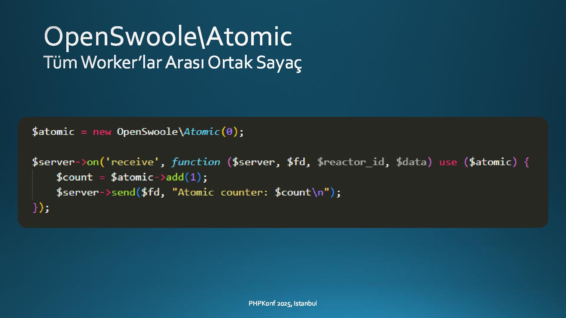 - Shared memory via OpenSwoole\Table and atomic counters via OpenSwoole\Atomic