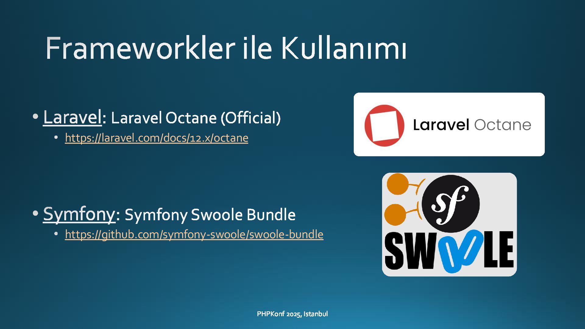 - Integration with frameworks like Laravel (Octane) and Symfony (Swoole Bundle)