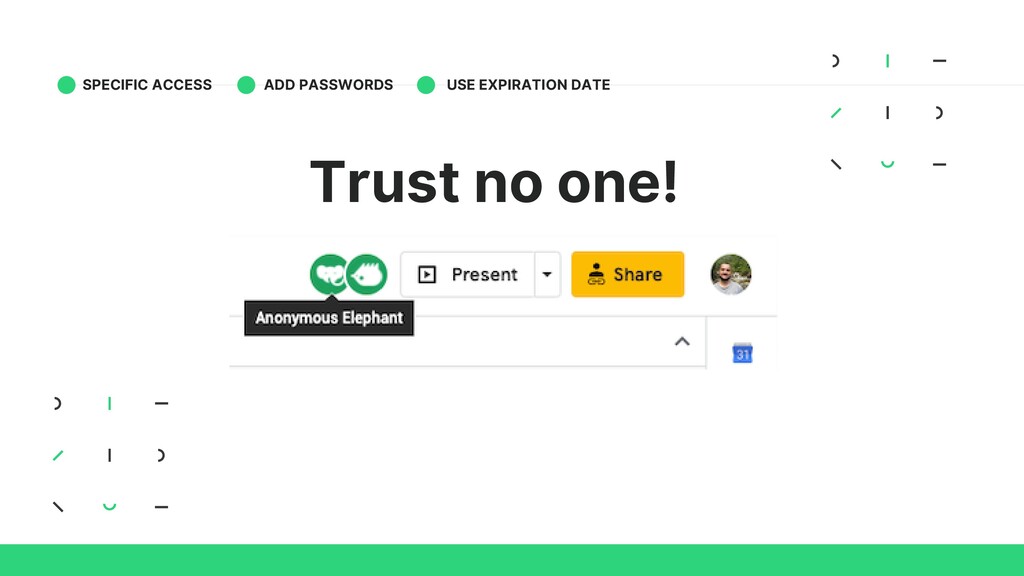 Trust no one! SPECIFIC ACCESS ADD PASSWORDS USE EXPIRATION DATE