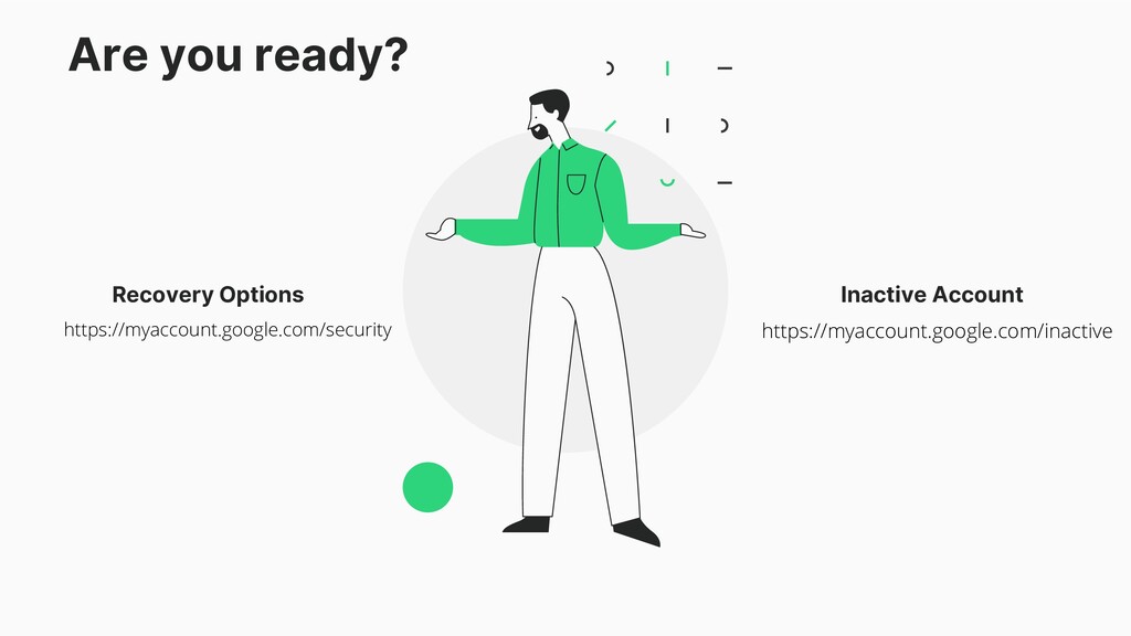 Recovery Options Inactive Account Are you ready? https://myaccount.google.com/inactive https://myaccount.google.com/security