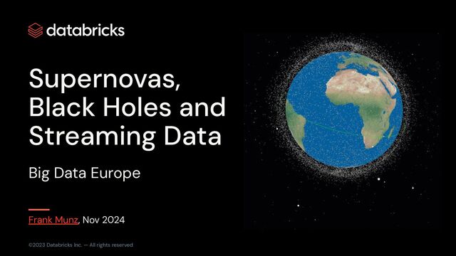 In this fun, hands-on, and in-depth HowTo, we use live streaming data for a comprehensive astrophysics use case with the Databricks Intelligence Platform. The focus of this session is on data engineering. We will tackle the challenge of analyzing real-time data from collapsing supernovas that emit gamma-ray bursts provided by NASA with their GCN project. You'll learn to ingest data from message buses and decide between Delta Live Tables, DBSQL, or Databricks Workflows for stream processing. Understand how to code ETL pipelines in SQL, including Kafka ingestion. Once we have the cleaned data stream, I'll demonstrate how Databricks Data Rooms offer natural language analytics and compare it to a notebook streaming data into a Vector Database for open source LLMs with RAG. This session is ideal for data engineers, data architects who like code, genAI enthusiasts, and anyone fascinated by sparkling stars. Learn when and how to use which Databricks products. The demo is easy to replicate at home