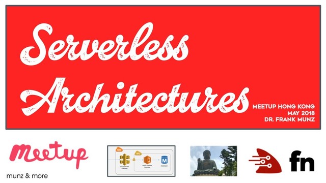 Function as a Service (FaaS) • Serverless: Abstract away all notion of infrastructure – Automated elasticity – True pay per invocation • Other serverless examples: Messaging, DBs, blob storage -> Future of cloud @frankmunz