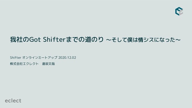 Shifter オンラインミートアップ 2020.12.02 株式会社エクレクト 逢坂文哉 我社のGot Shifterまでの道のり 〜そして僕は情シスになった〜