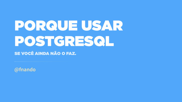 Nessa palestra iremos explorar algumas funcionalidades do PostgreSQL, com dicas e truques que irão ajudar no seu uso diário. Além disso você verá porque você deve considerar o PostgreSQL em vez do MySQL se você ainda não fez isso.