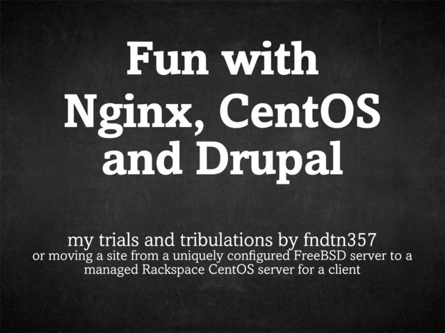 Some resources for setting up your own Nginx web server for Drupal on CentOS 6.x. I found that the speed was greatly enhanced compared to optimized Apache2.