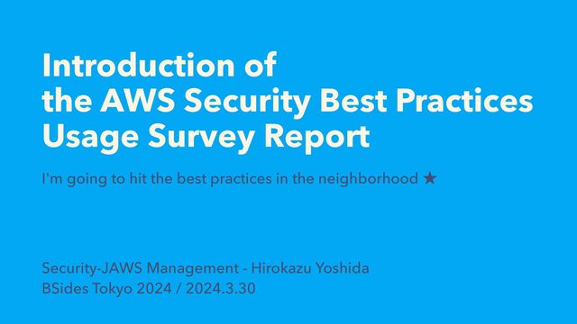 Security-JAWSで作成したAWSセキュリティの ベストプラクティスに関する 利用実態調査のレポートをAWSにそんなに詳しくない人向けに紹介したものです。