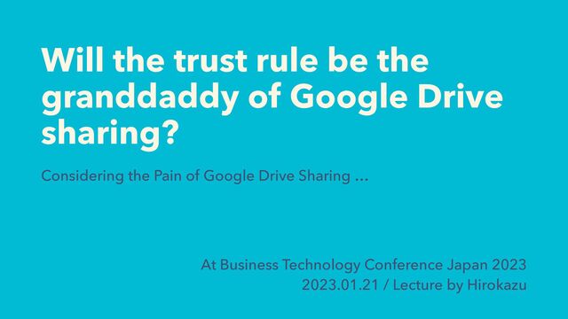 sharing? Considering the Pain of Google Drive Sharing … At Business Technology Conference Japan 2023 2023.01.21 / Lecture by Hirokazu