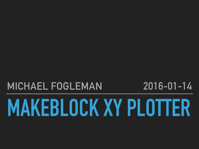 C ▸ Very rudimentary GCode support ▸ G28 = Home, G1 = Move ▸ M1 = Set Pen Position ▸ Very rudimentary motion planning ▸ But it’s Open Source, so we can hack it 2016-01-14