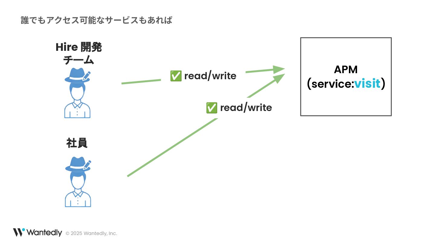 © 2025 Wantedly, Inc. 誰でもアクセス可能なサービスもあれば ✅ read/write Hire 開発 チーム