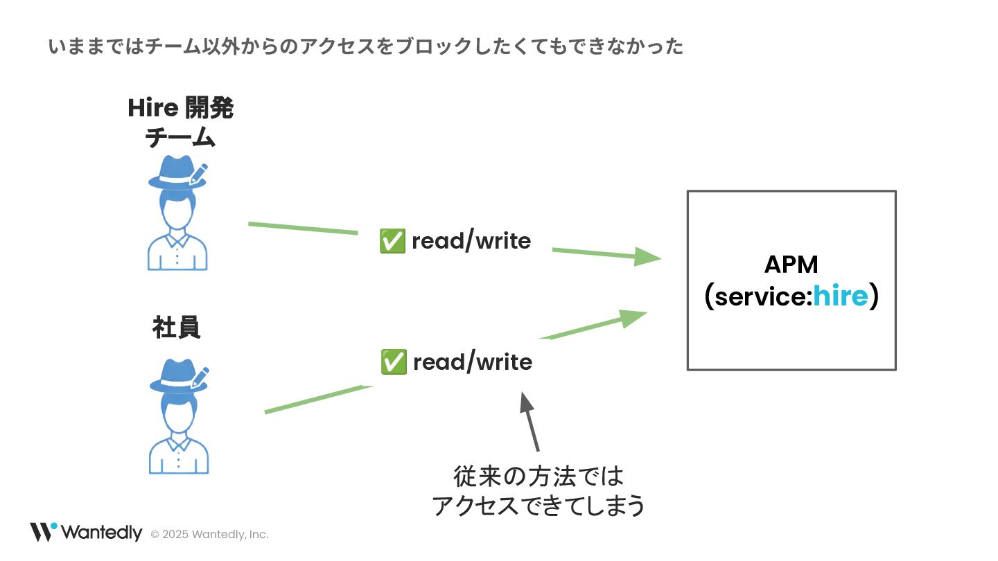 APM (service:hire) 社員 ✅ read/write 従来の方法では アクセスできてしまう