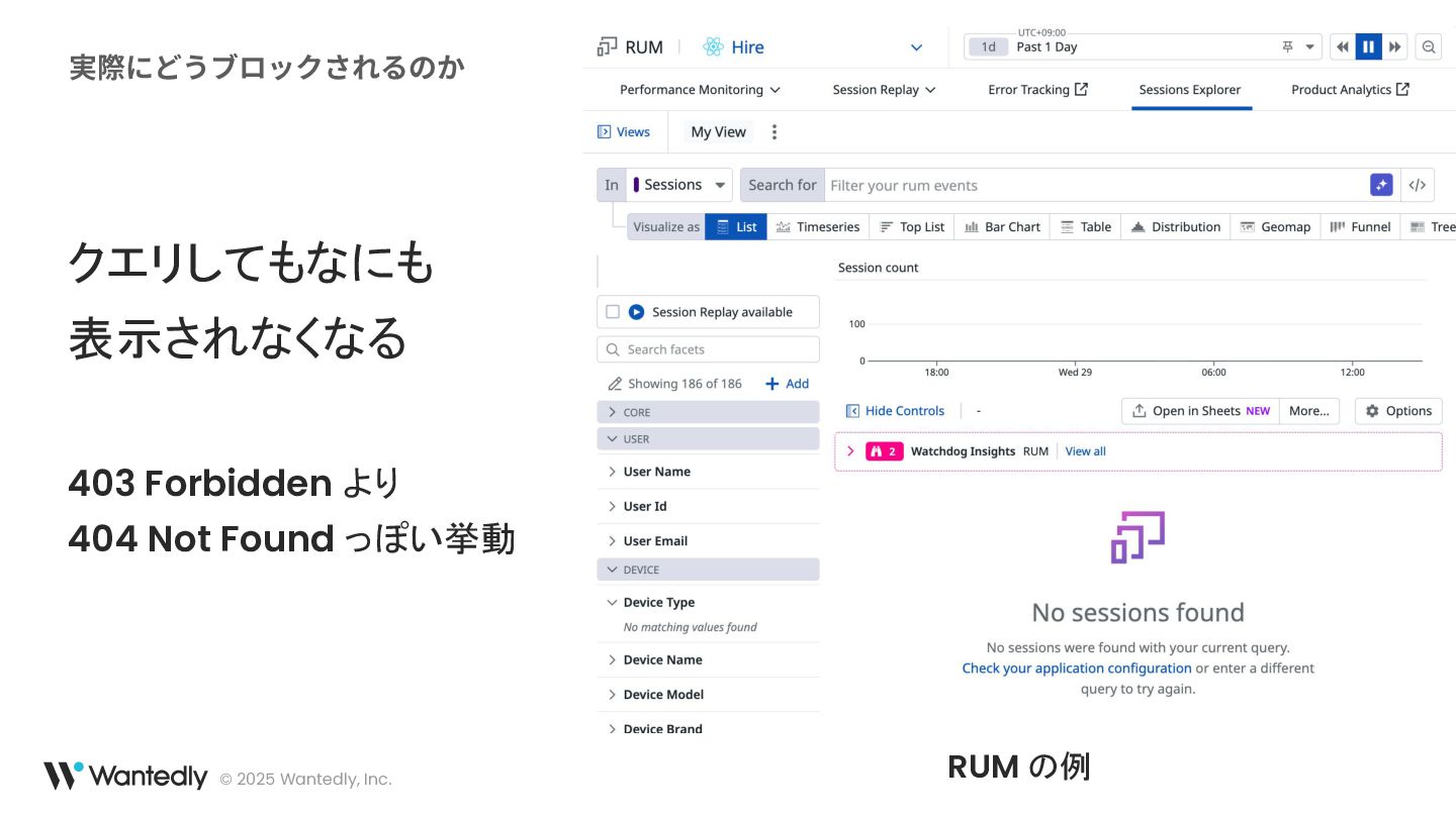 © 2025 Wantedly, Inc. 実際にどうブロックされるのか クエリしてもなにも 表示されなくなる 403 Forbidden より