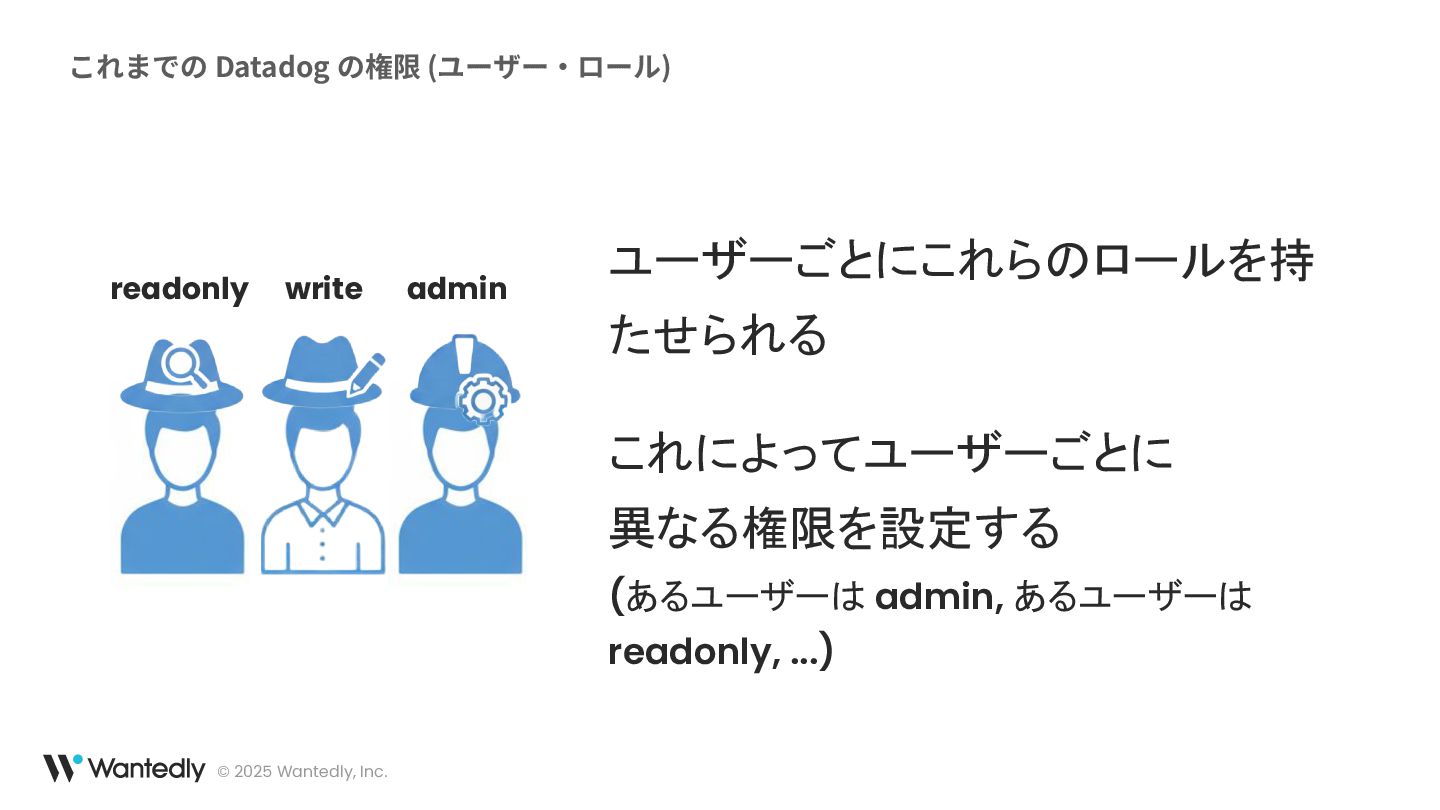 © 2025 Wantedly, Inc. これまでの Datadog の権限 (ユーザー‧ロール) readonly write