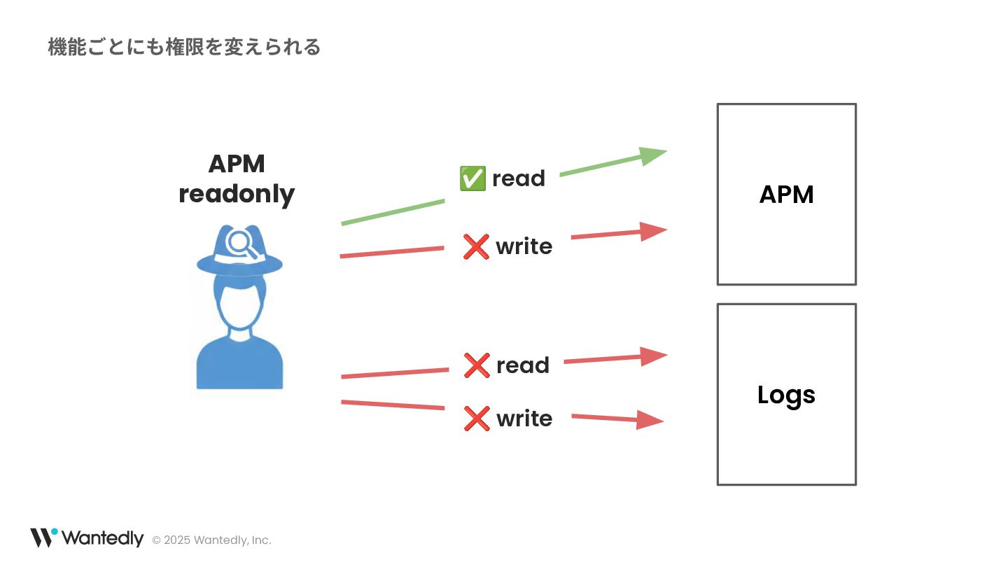 © 2025 Wantedly, Inc. 機能ごとにも権限を変えられる ✅ read ❌ write APM