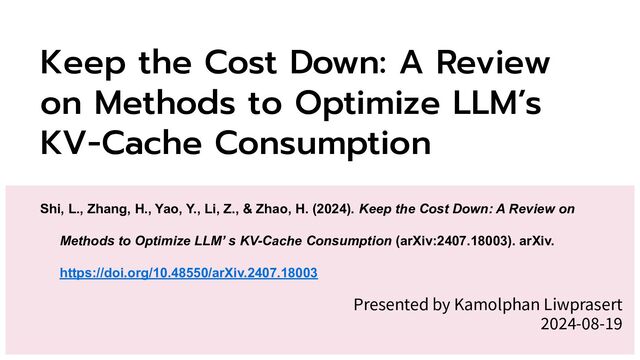 Luohe, S., Hongyi, Z., Yao, Y., Zuchao, L., & Hai, Z. (2024). Keep the Cost Down: A Review on Methods to Optimize LLM's KV-Cache Consumption. arXiv preprint arXiv:2407.18003.