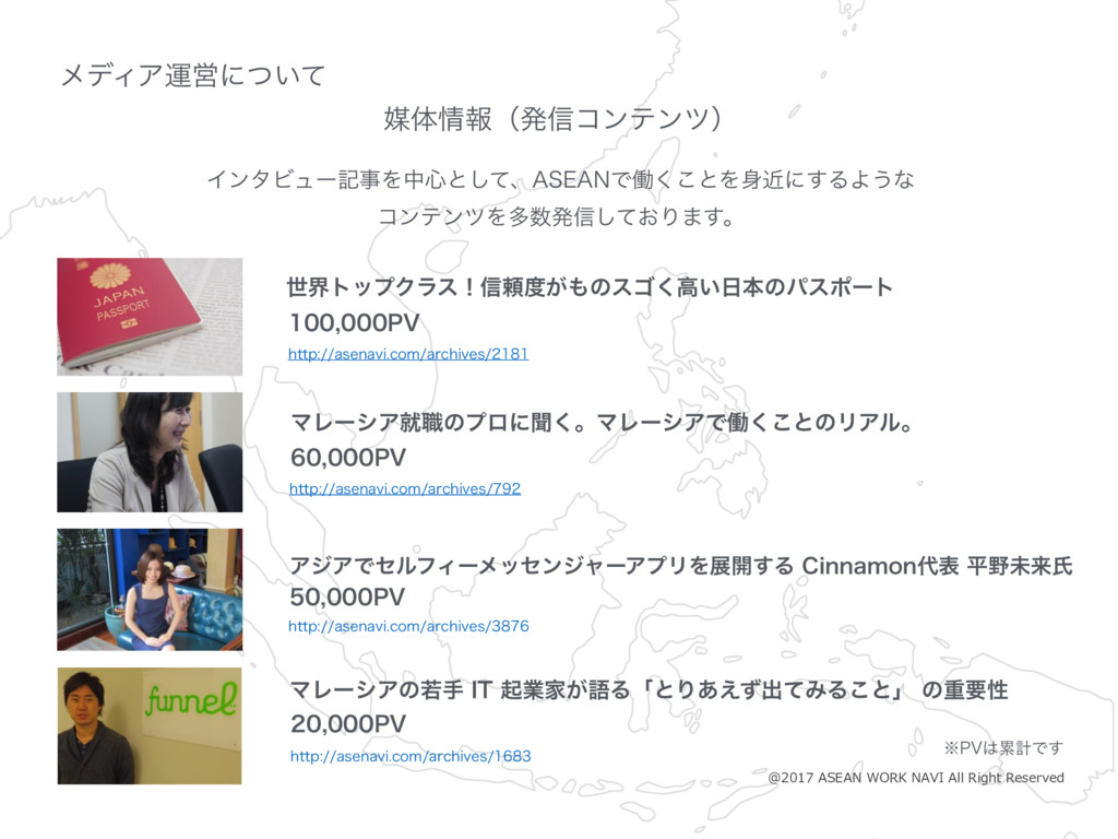 17 ϚϨʔγΞब৬ͷϓϩʹฉ͘ɻϚϨʔγΞͰಇ͘͜ͱͷϦΞϧɻ 17 IUUQBTFOBWJDPNBSDIJWFT IUUQBTFOBWJDPNBSDIJWFT ΞδΞͰηϧϑΟʔϝοηϯδϟʔΞϓϦΛల։͢Δ$JOOBNPOදฏະདྷࢯ 17 IUUQBTFOBWJDPNBSDIJWFT ϚϨʔγΞͷएख*5ىۀՈ͕ޠΔʮͱΓ͋͑ͣग़ͯΈΔ͜ͱʯͷॏཁੑ 17 IUUQBTFOBWJDPNBSDIJWFT ˞17ྦྷܭͰ͢ ΠϯλϏϡʔهࣄΛத৺ͱͯ͠ɺ"4&"/Ͱಇ͘͜ͱΛۙʹ͢ΔΑ͏ͳ ίϯςϯπΛଟൃ৴͓ͯ͠Γ·͢ɻ