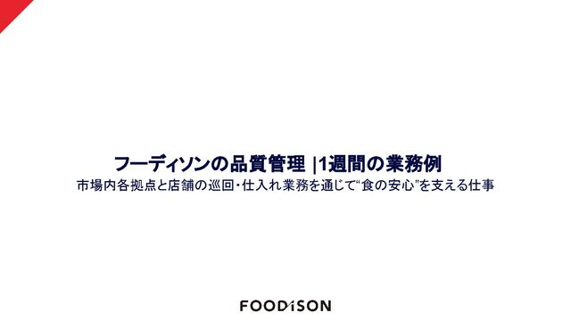 フーディソンの品質管理 |1週間の業務例 市場内各拠点と店舗の巡回・仕入れ業務を通じて“食の安心”を支える仕事