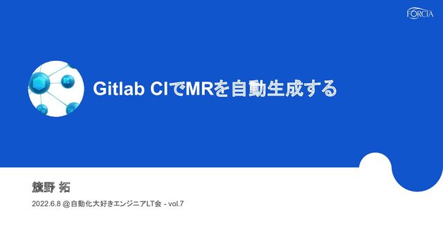 Gitlab CIでMRを自動生成する 籏野 拓 2022.6.8 @自動化大好きエンジニアLT会 - vol.7