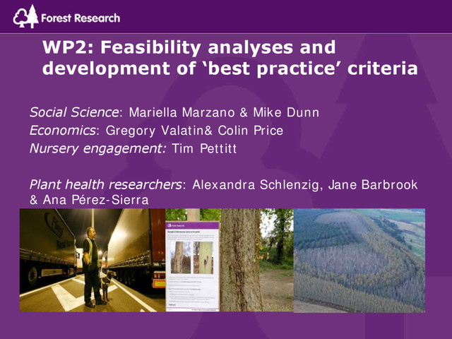 Science: Mariella Marzano & Mike Dunn Economics: Gregory Valatin& Colin Price Nursery engagement: Tim Pettitt Plant health researchers: Alexandra Schlenzig, Jane Barbrook & Ana Pérez-Sierra
