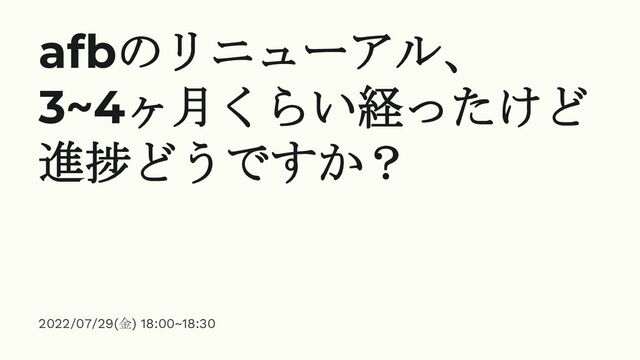 2022/07/29(金) 18:00~18:30 afbのリニューアル、 3~4ヶ月くらい経ったけど 進捗どうですか?